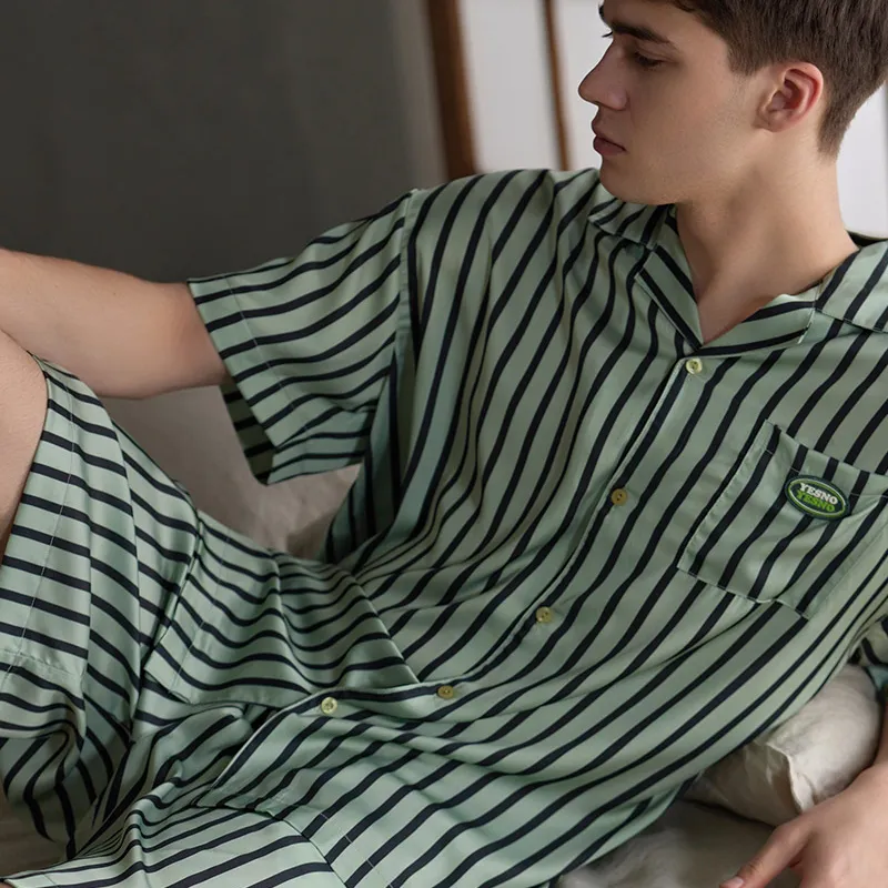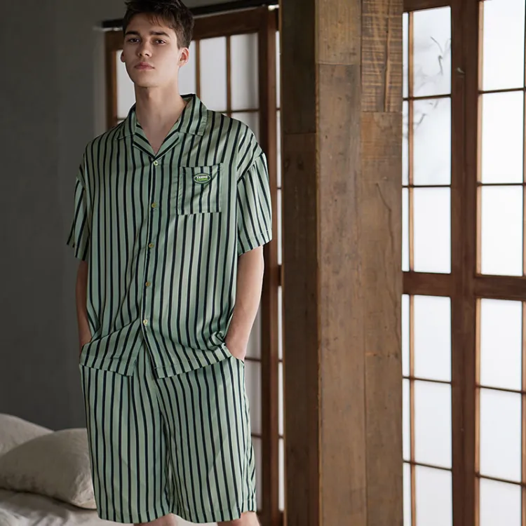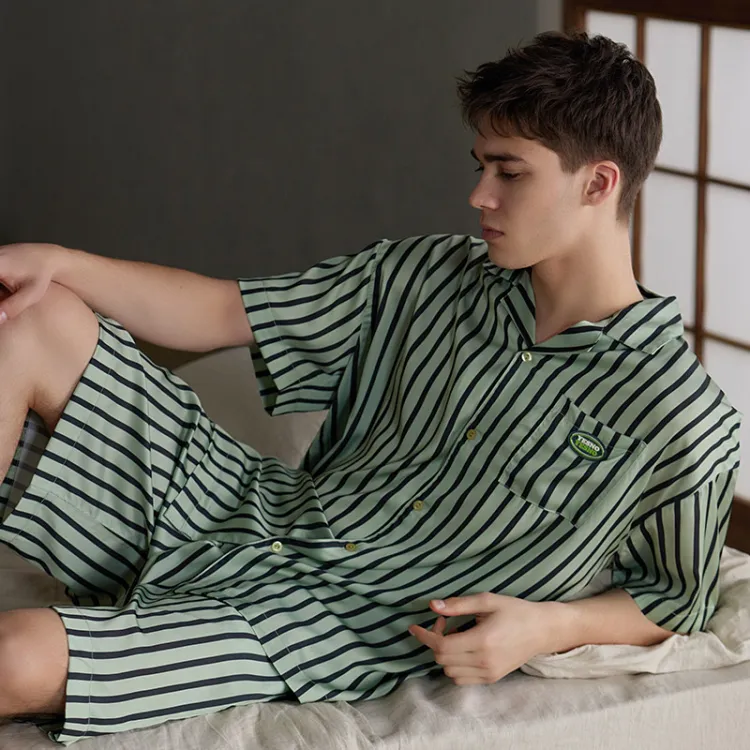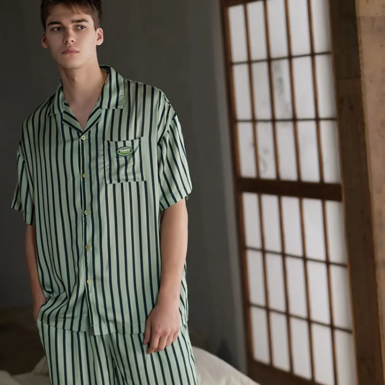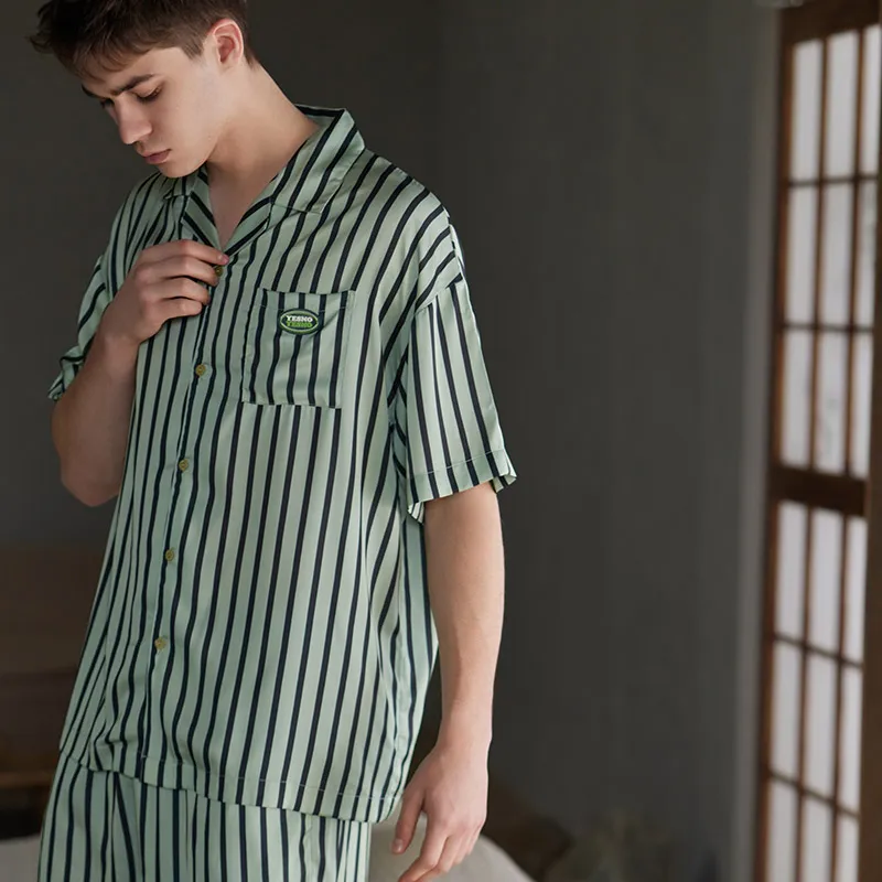 Same Language Пижамный комплект Мужской Полосы Бирюзовый Синий