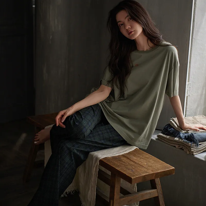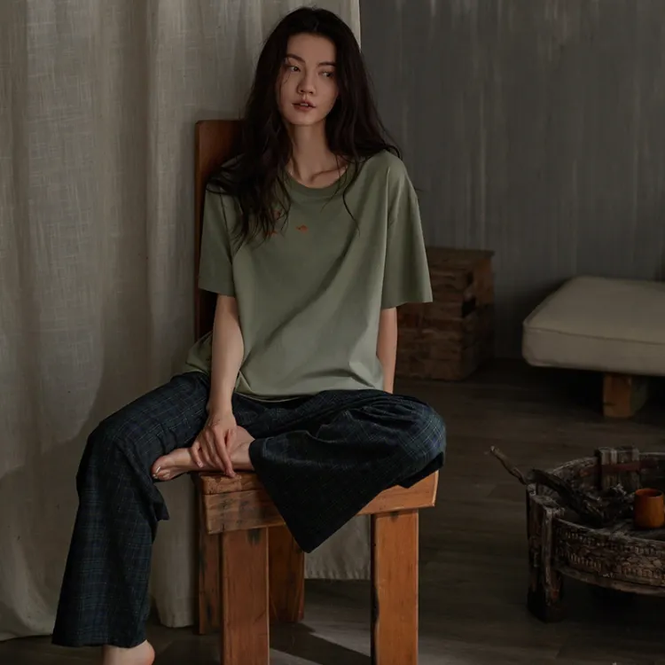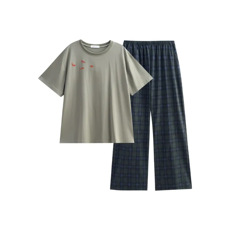 Same Language Пижамный комплект Женские Армейский зеленый · Океанский бирюзовый Клетчатый