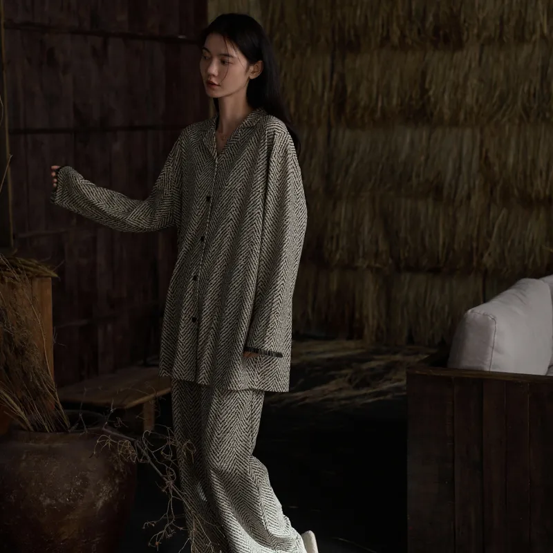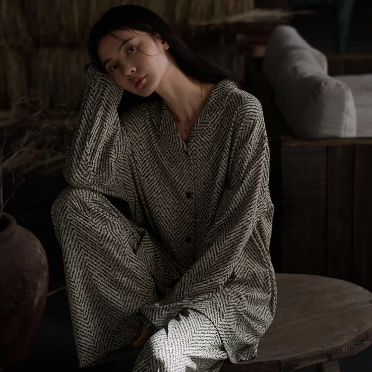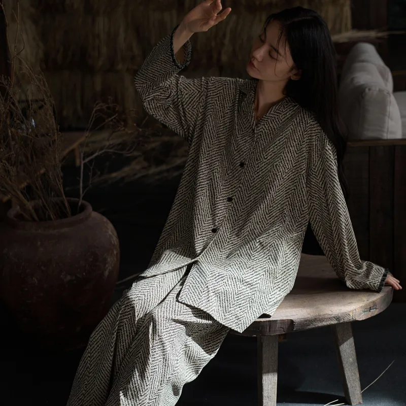 Same Language Черный Белый Снежинка Отношение Узор Женские Пижамные Комплекты