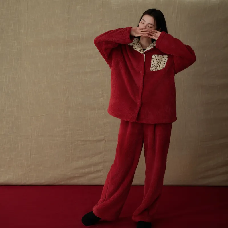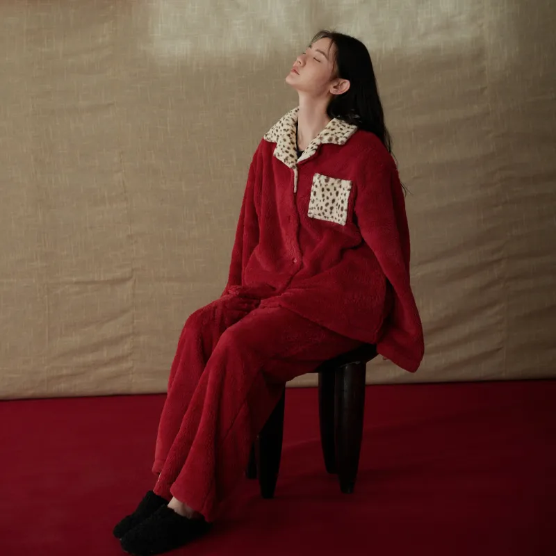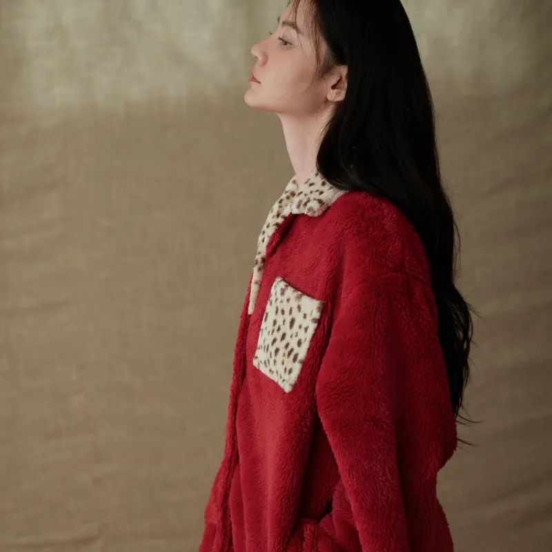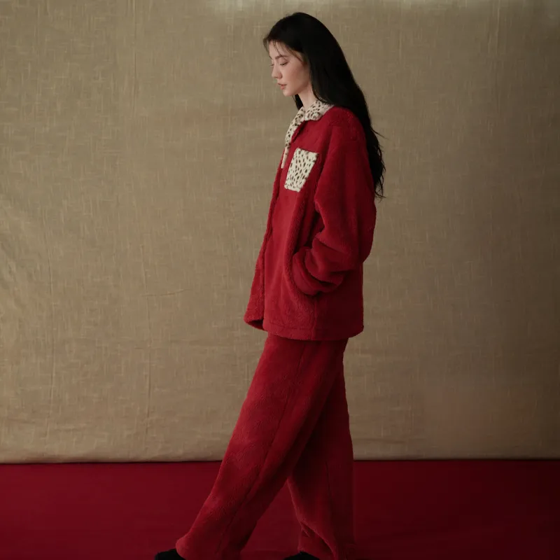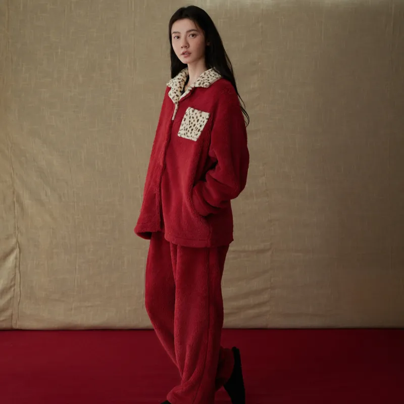 Same Language Пижамный комплект Женский Китайский Красный · Леопардовый с принтом