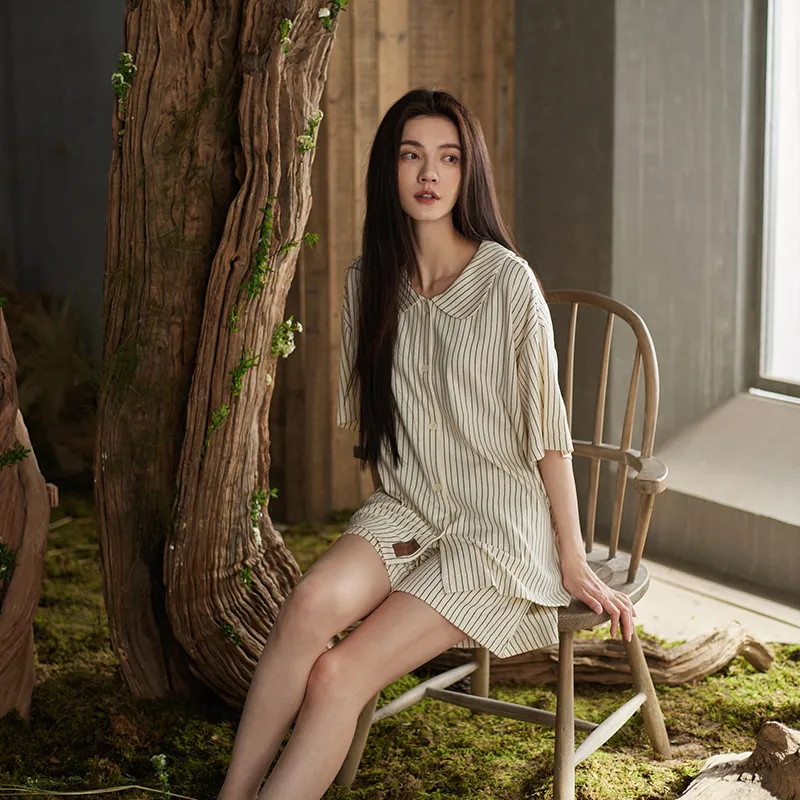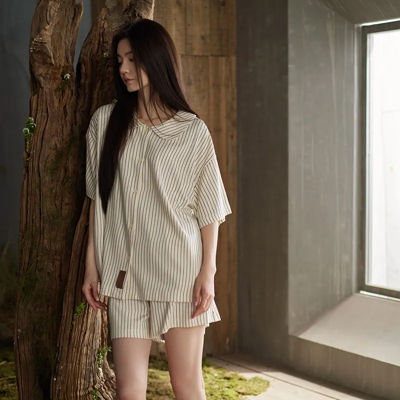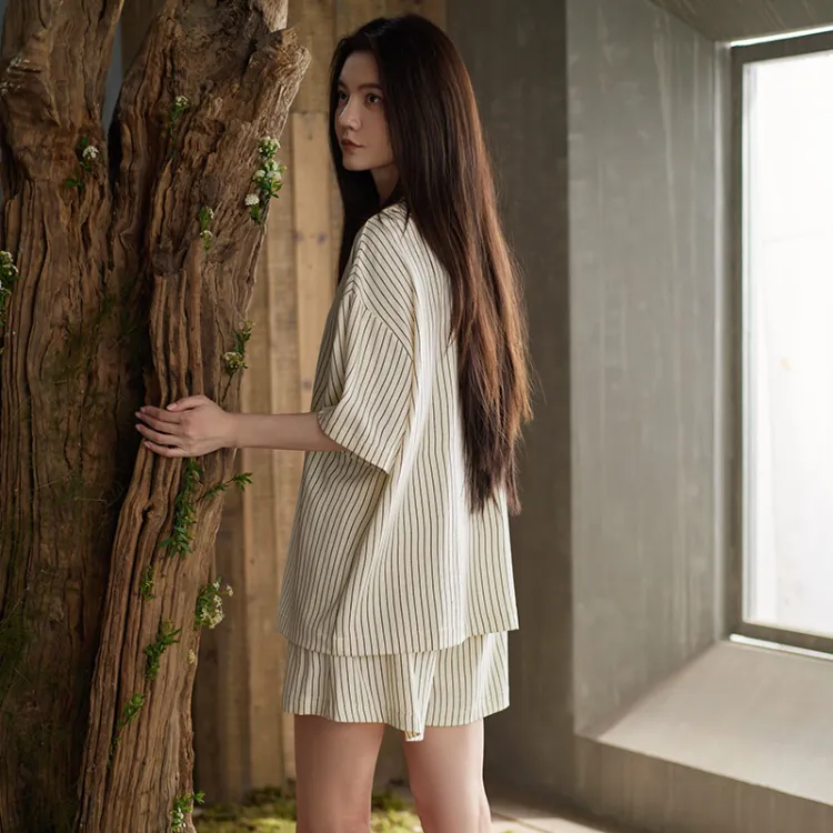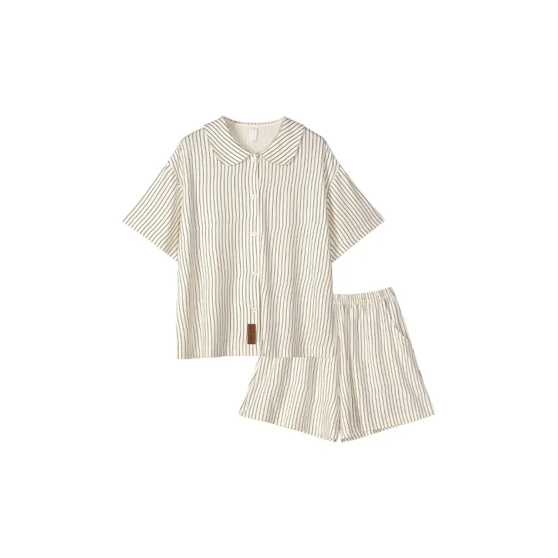 Same Language Пижамный комплект женский оранжевый белый вертикальные полосы
