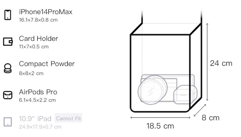Длина (размер в длину): 24 см, Ширина: 8 см, Длина корпуса: 18,5 см