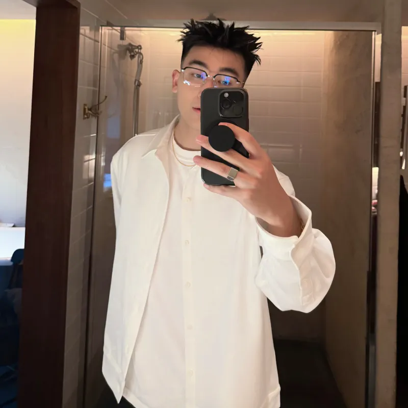 SANBAI STUDIO Бык Кость Пуговица Рубашка Мужская AUTUMN Коммутирование Повседневный Отложной воротник Длинный рукав Унисекс