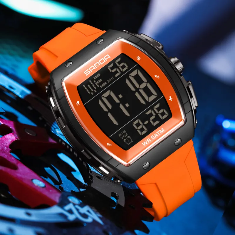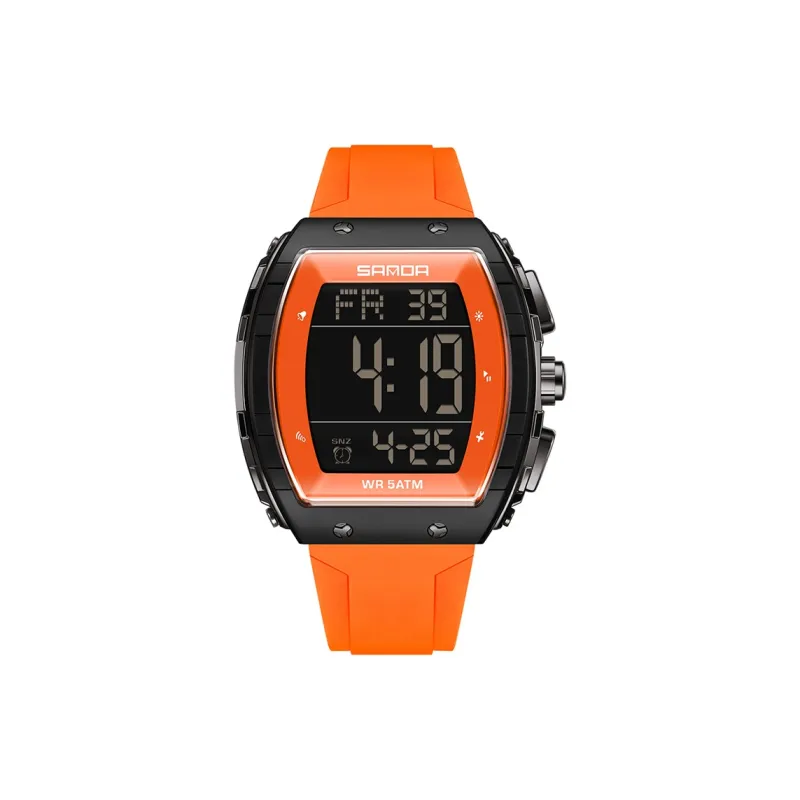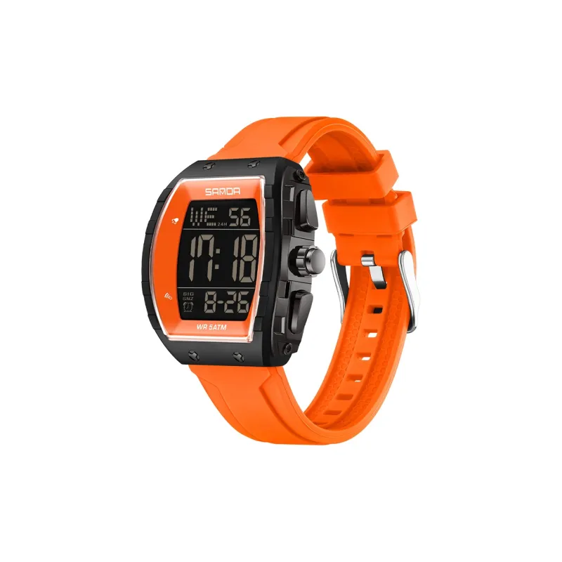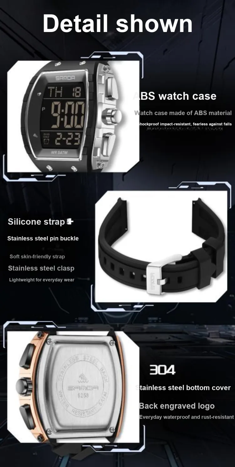 Sanda Electronic Механизм Силиконовый ремешок Часы Мужские Черный циферблат