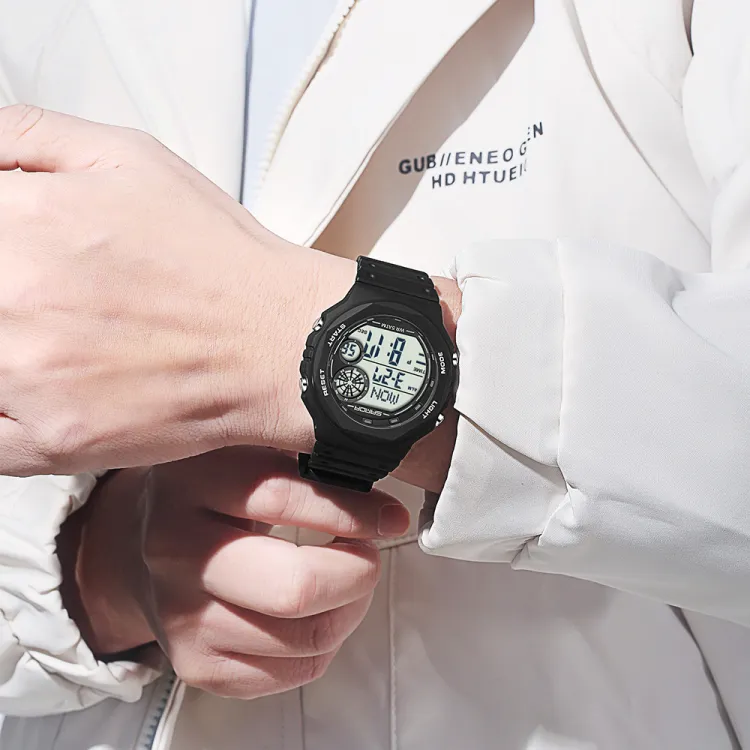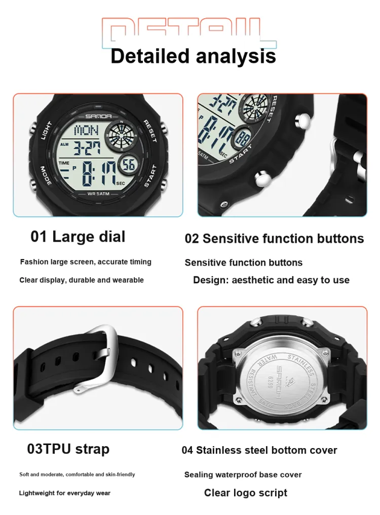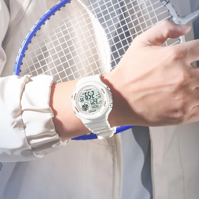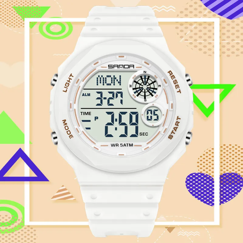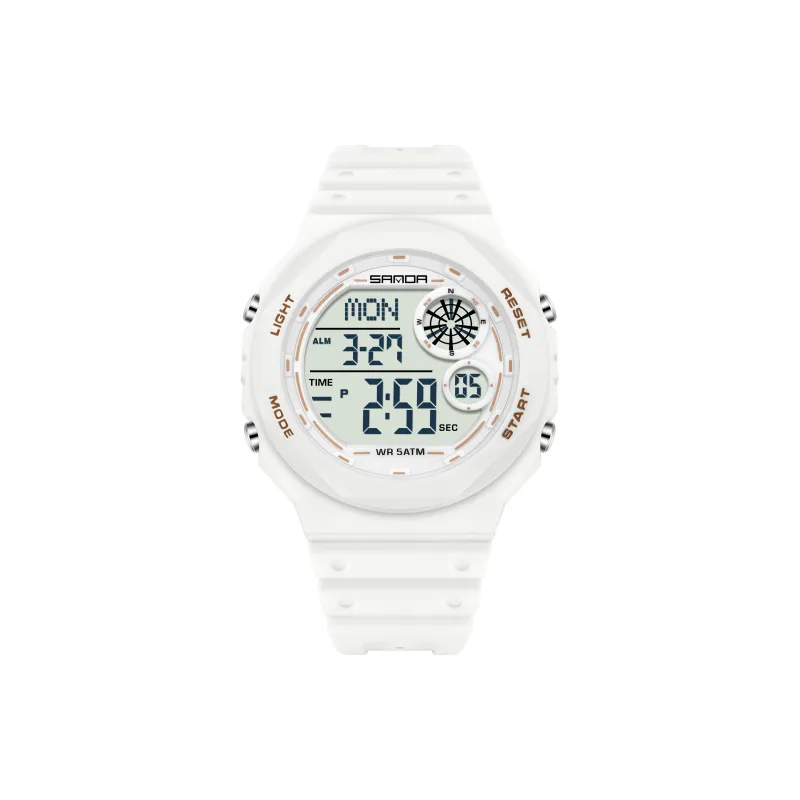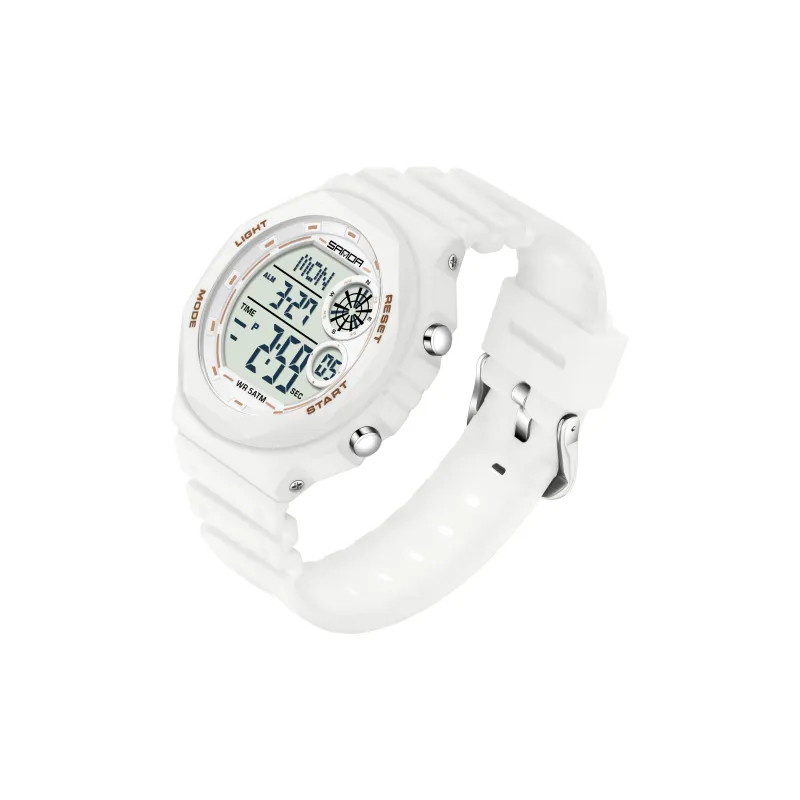 Sanda Electronic Механизм TPU Ремешок Часы Мужские Белый Циферблат