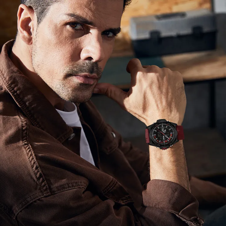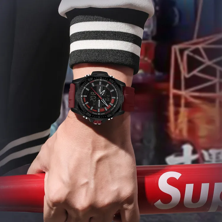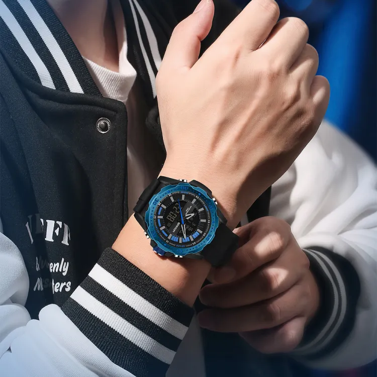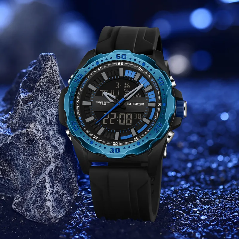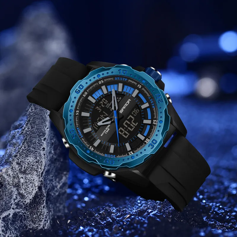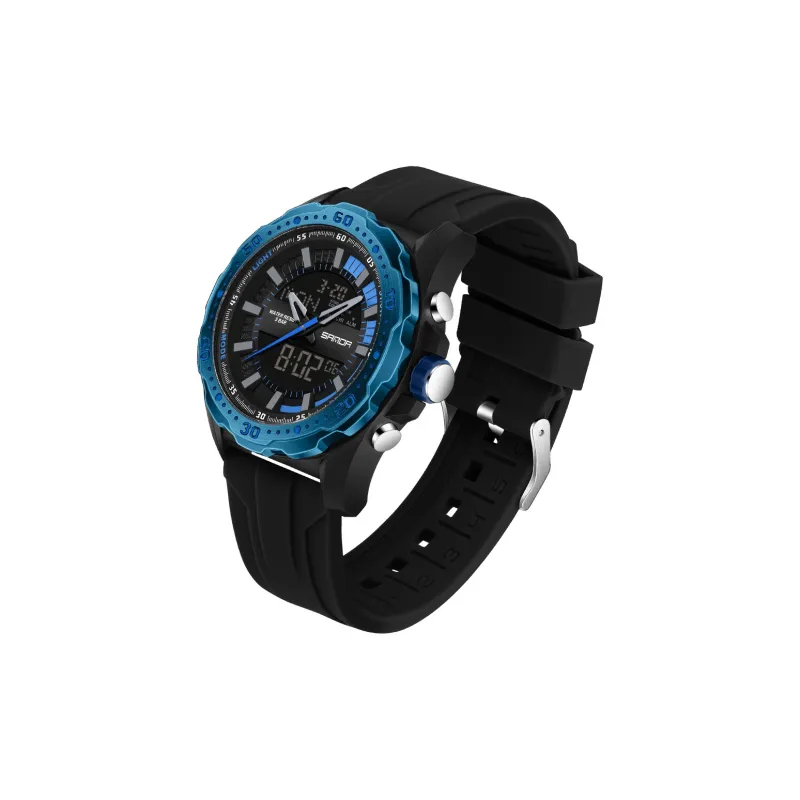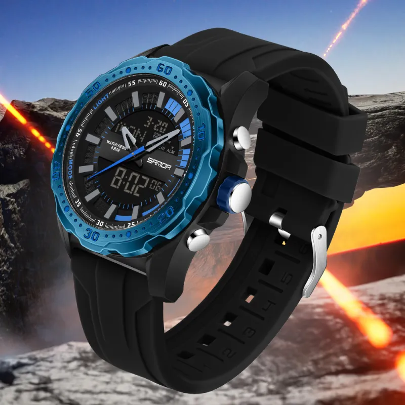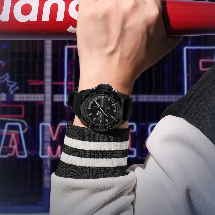 Sanda Электронный + Кварцевый механизм Силиконовый ремешок Часы Мужские Черный циферблат