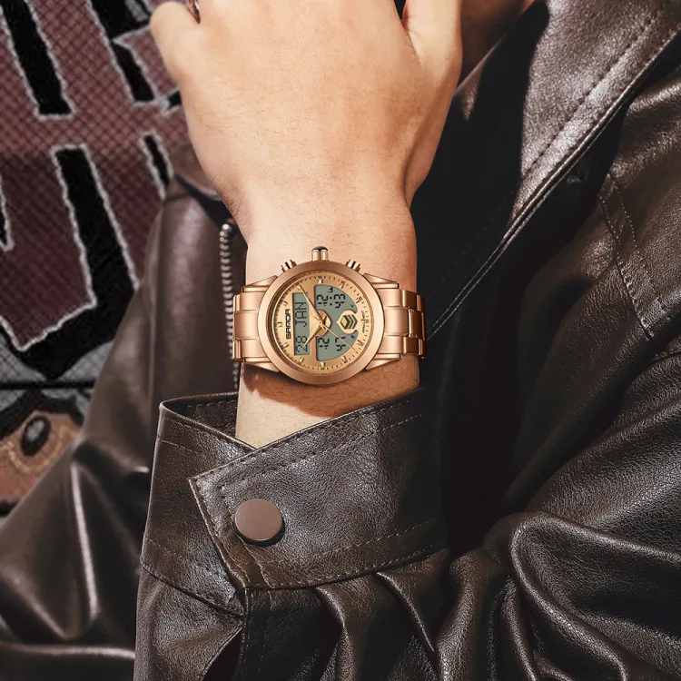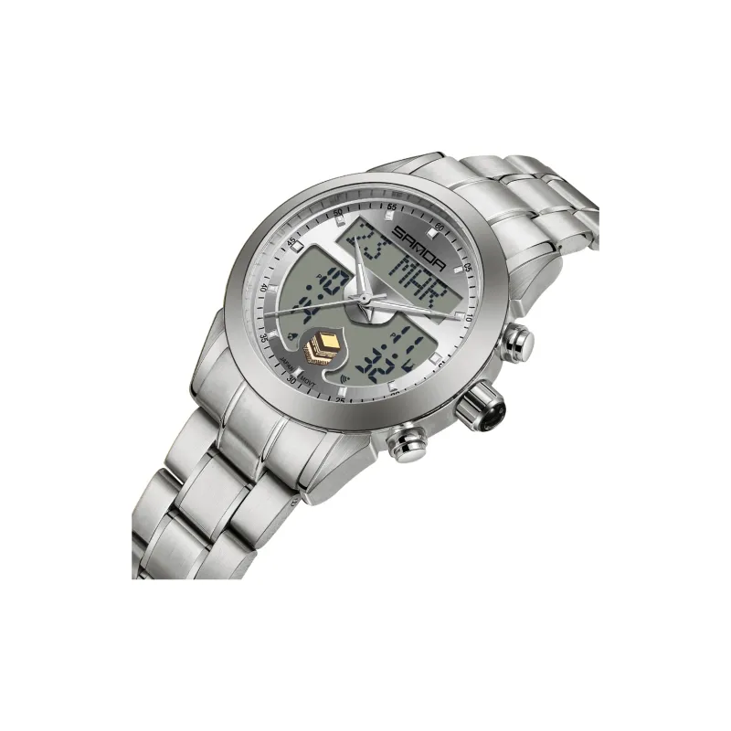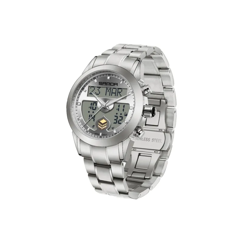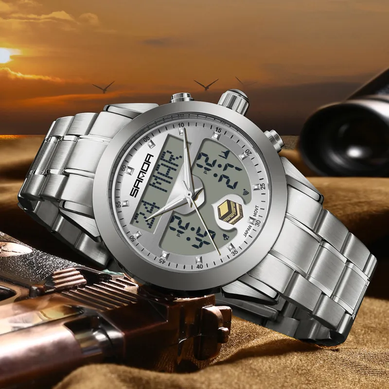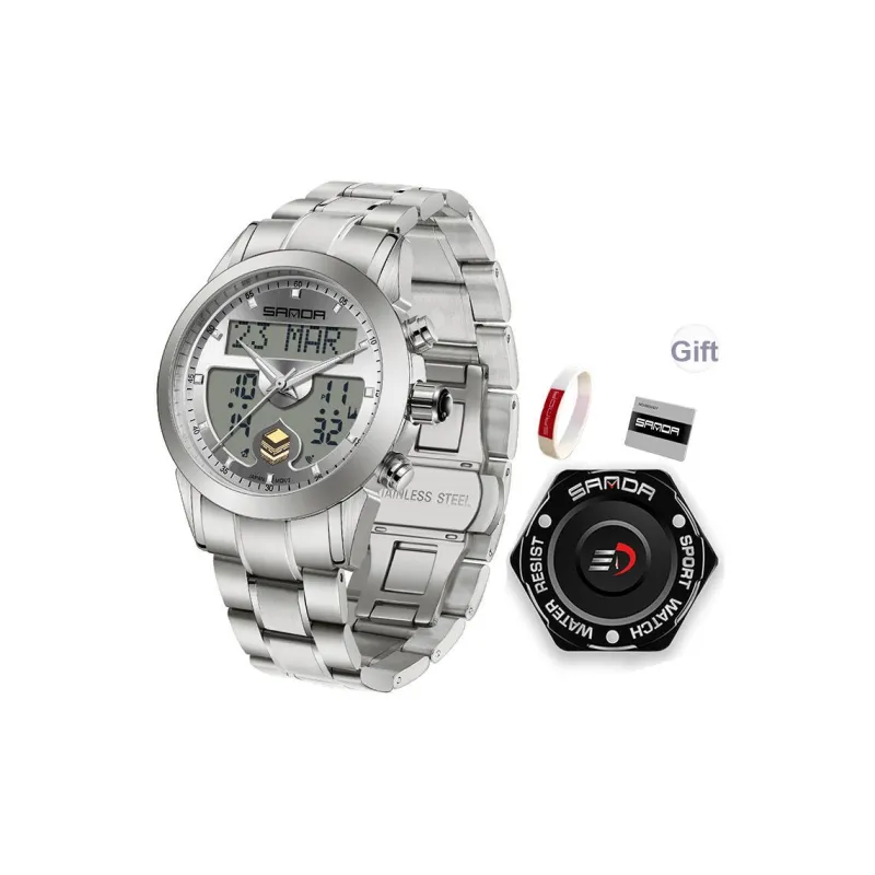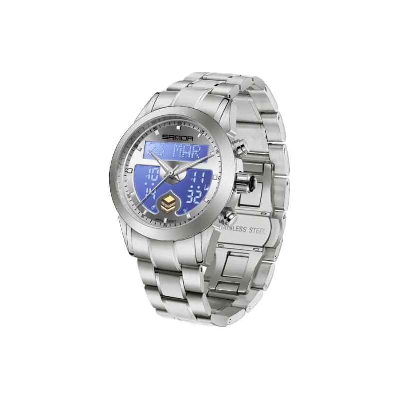 Sanda Электронный + Кварцевый механизм Стальной ремешок Часы Мужские синий циферблат
