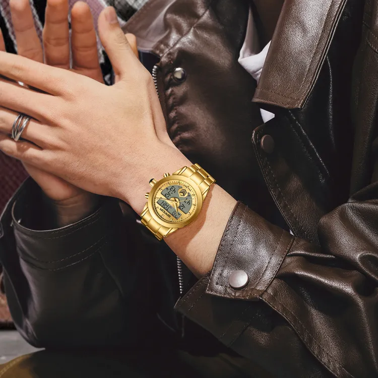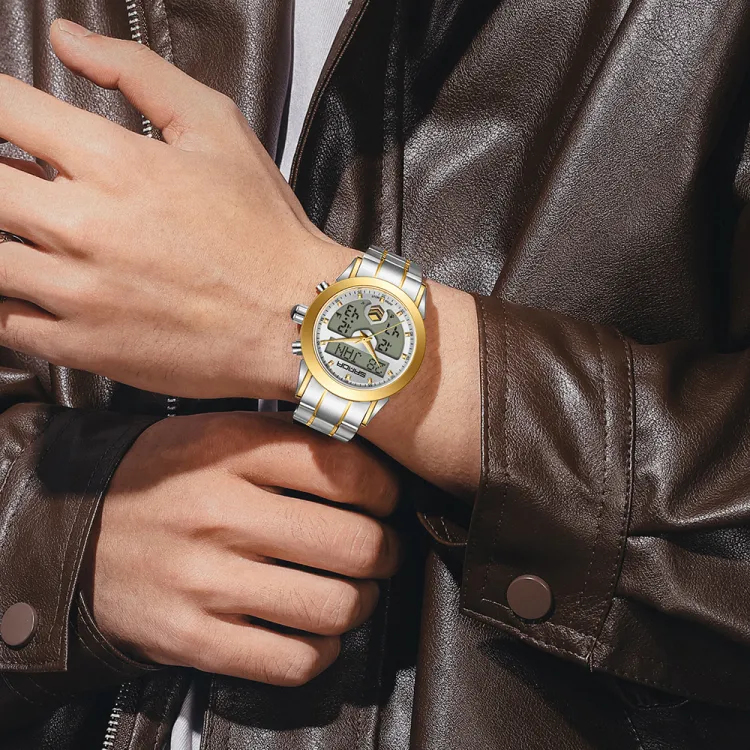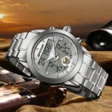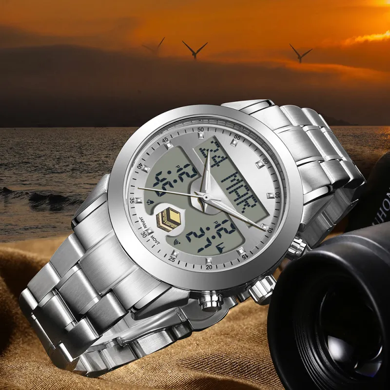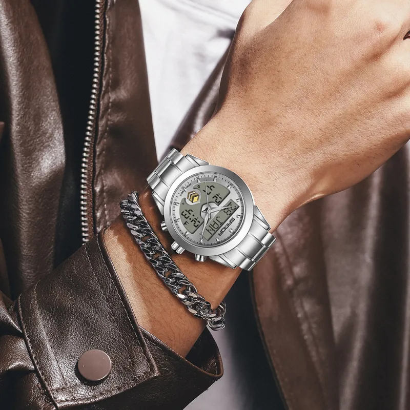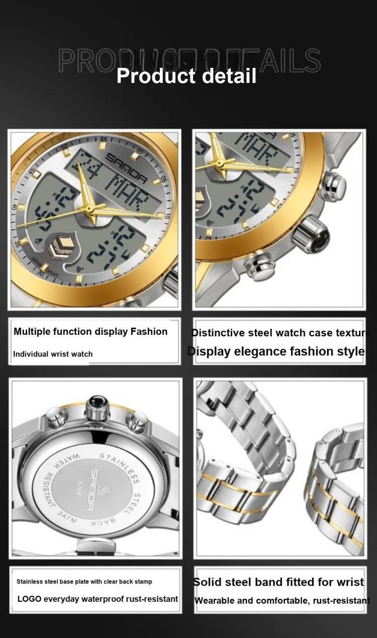 Sanda Электронный + Кварцевый механизм Стальной ремешок Часы Мужские синий циферблат