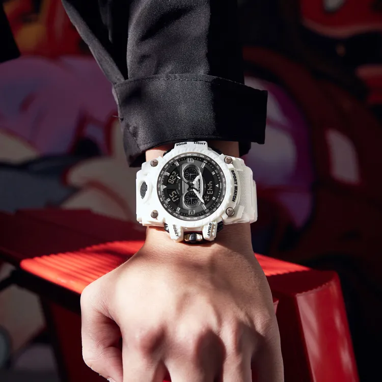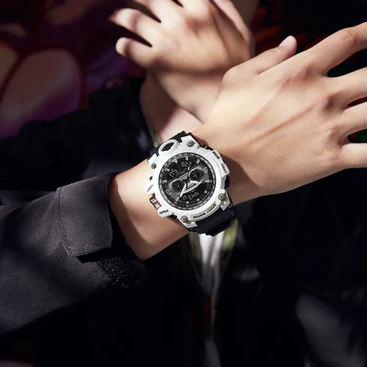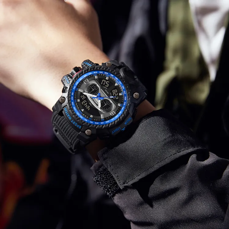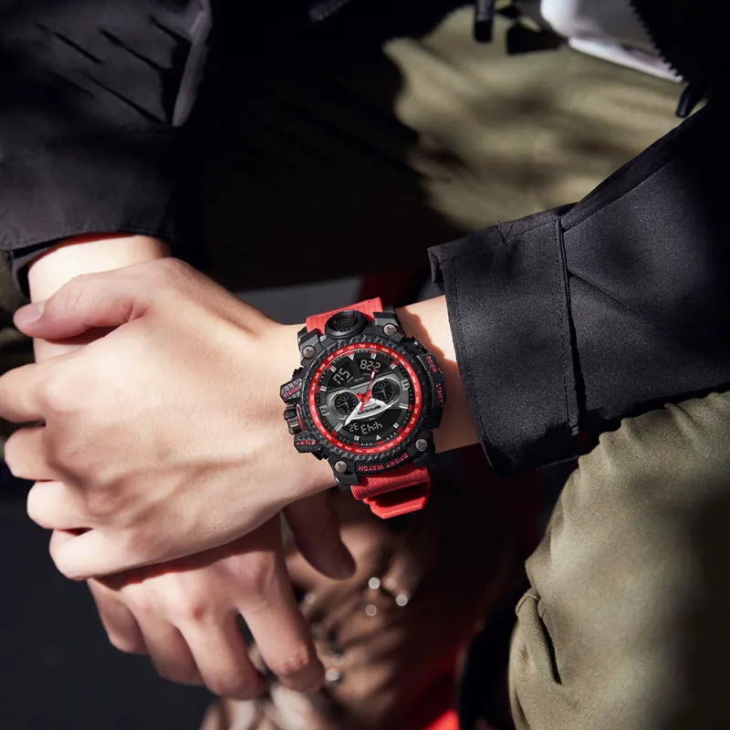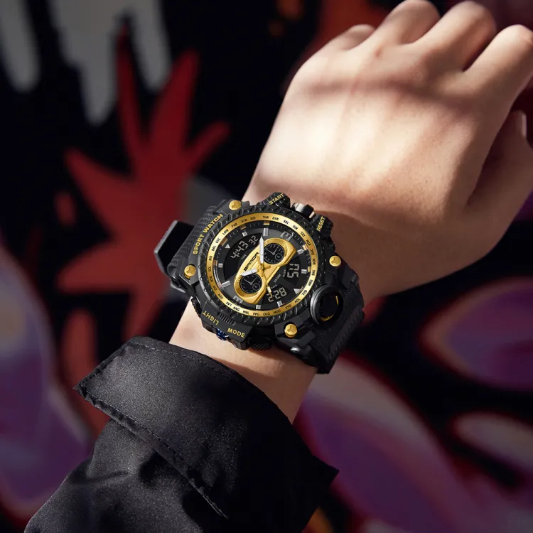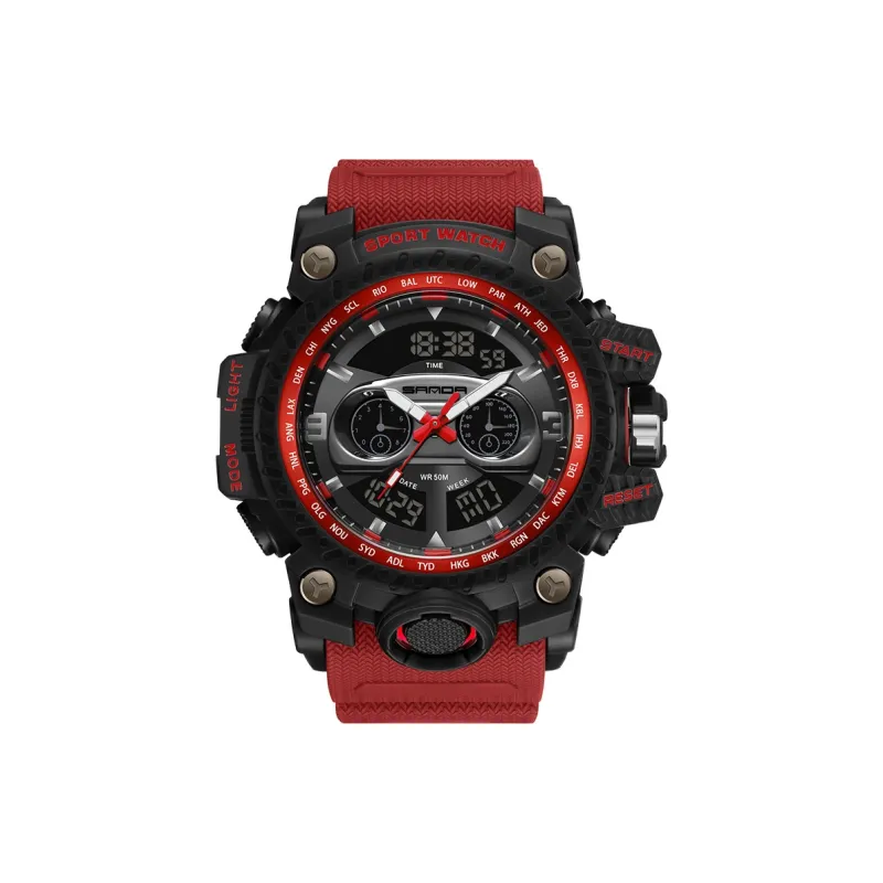 Sanda Электронный + Кварцевый механизм TPU Ремешок Часы Мужские Черный Циферблат