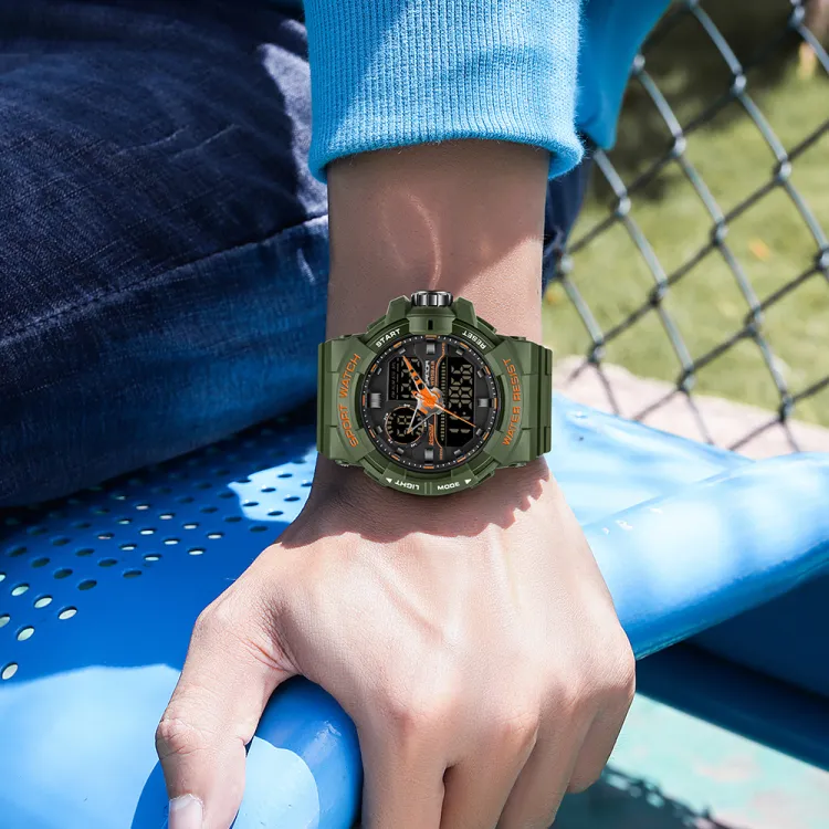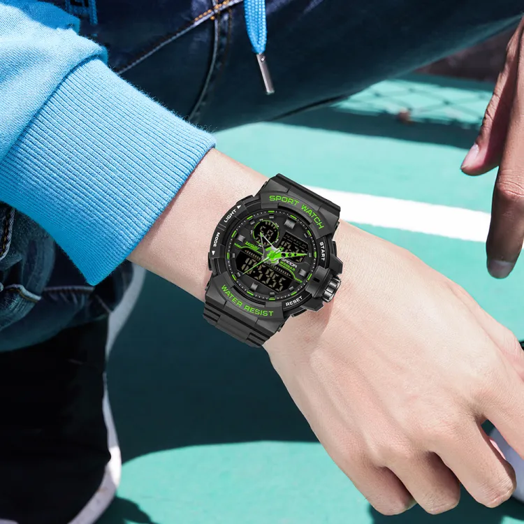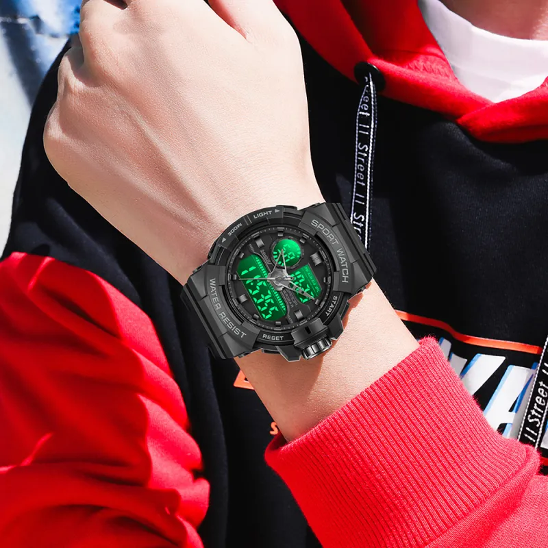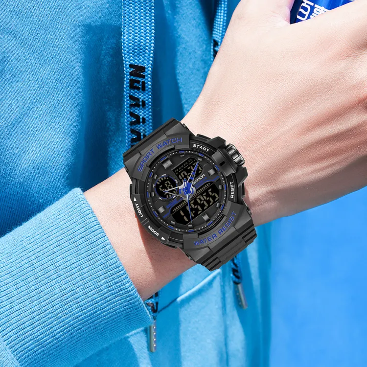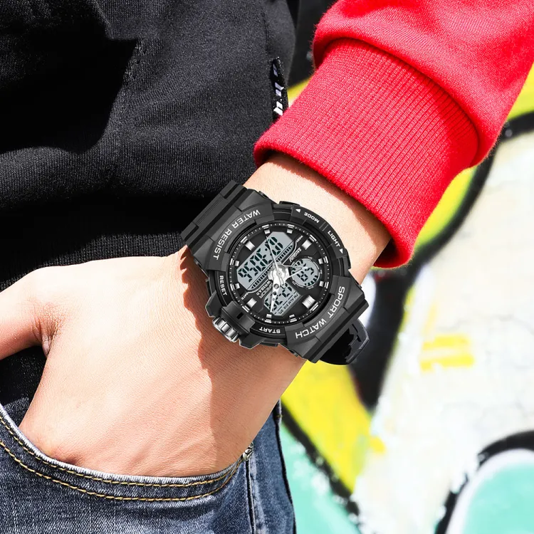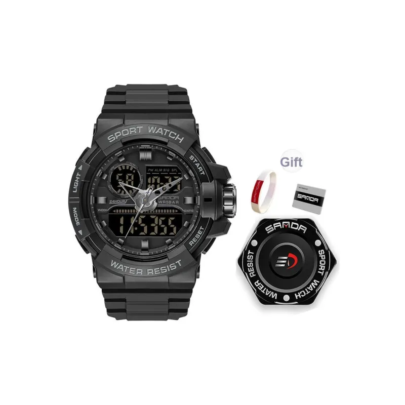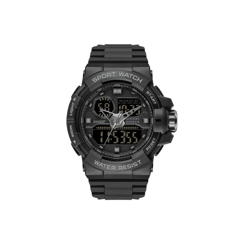 Sanda Электронный + Кварцевый механизм TPU Ремешок Часы Мужские Черный Циферблат