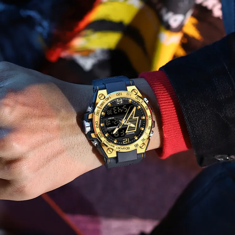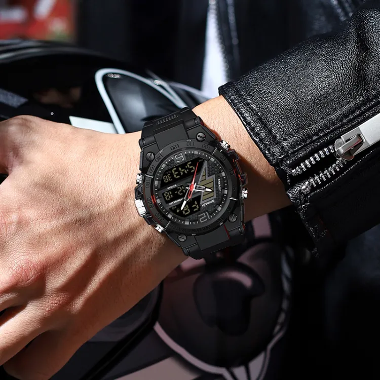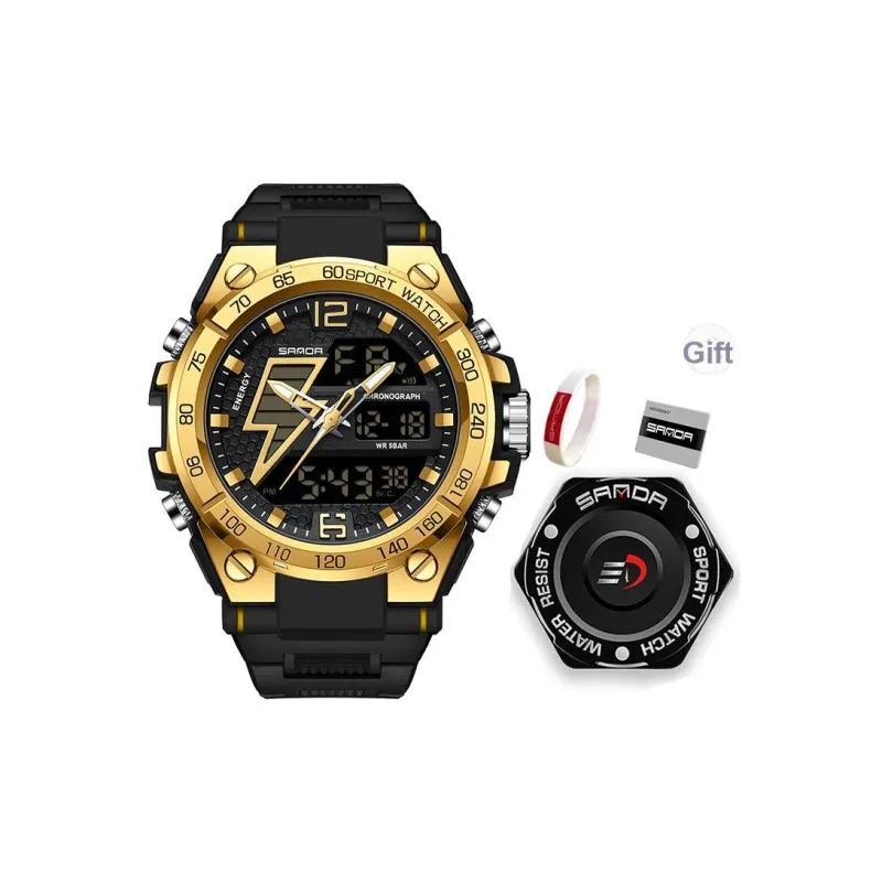 Sanda Электронный + Кварц Механизм TPU Ремешок Часы Унисекс Черный Циферблат