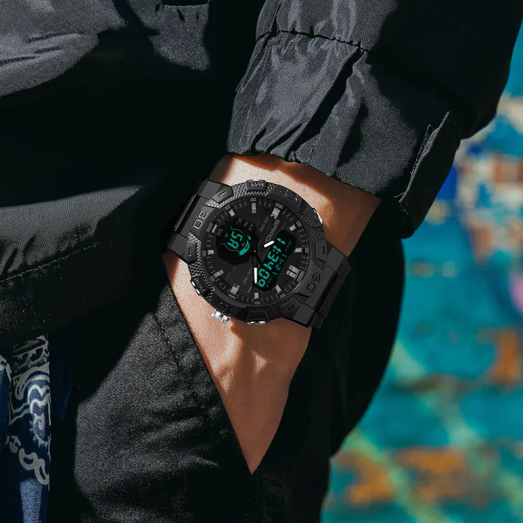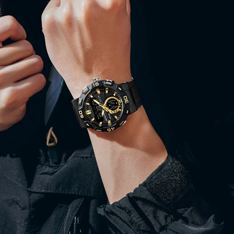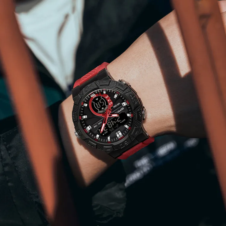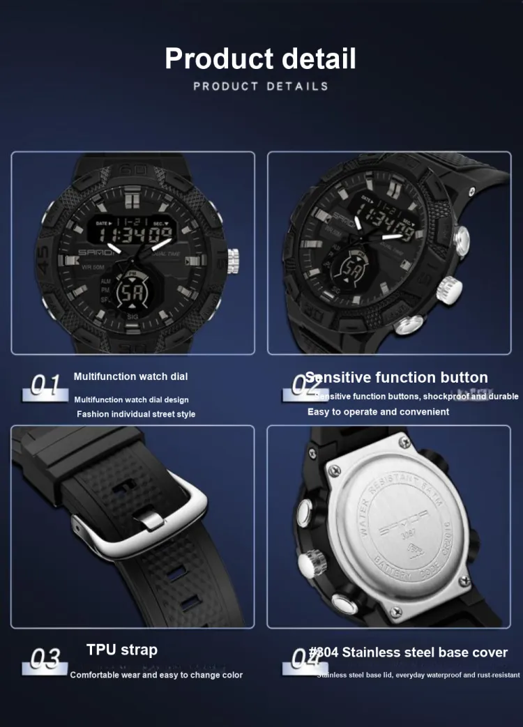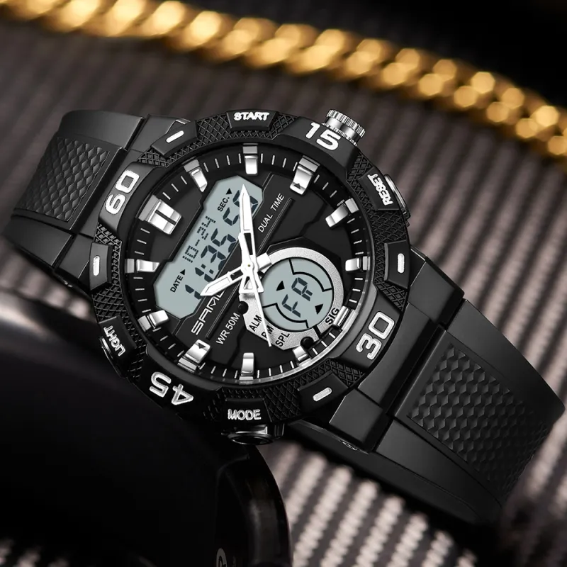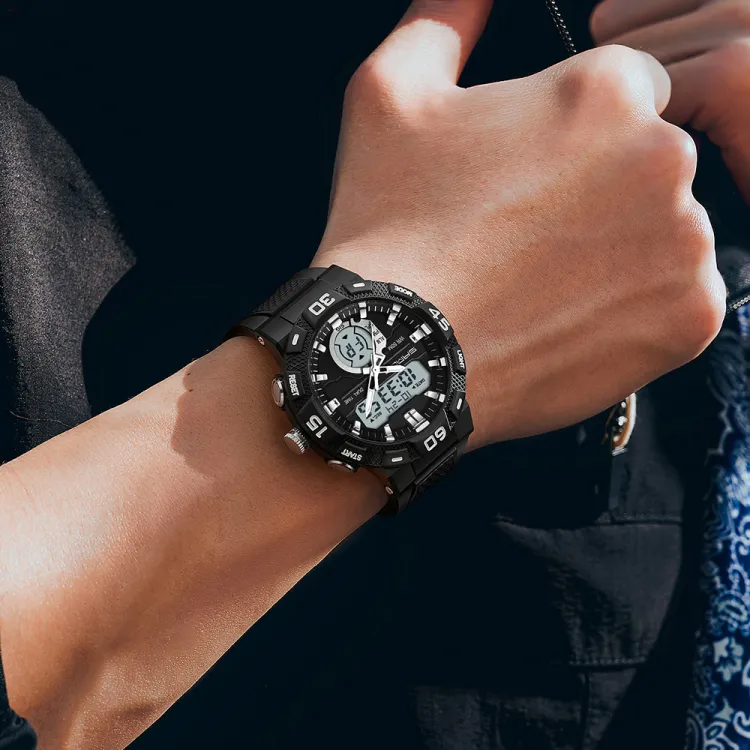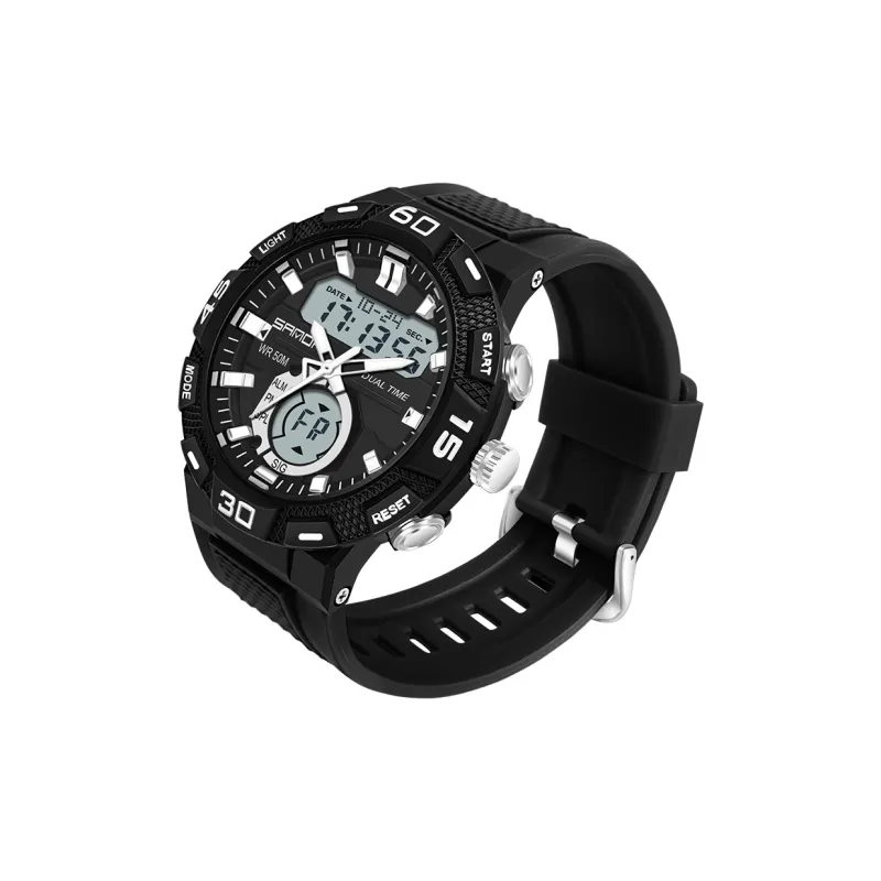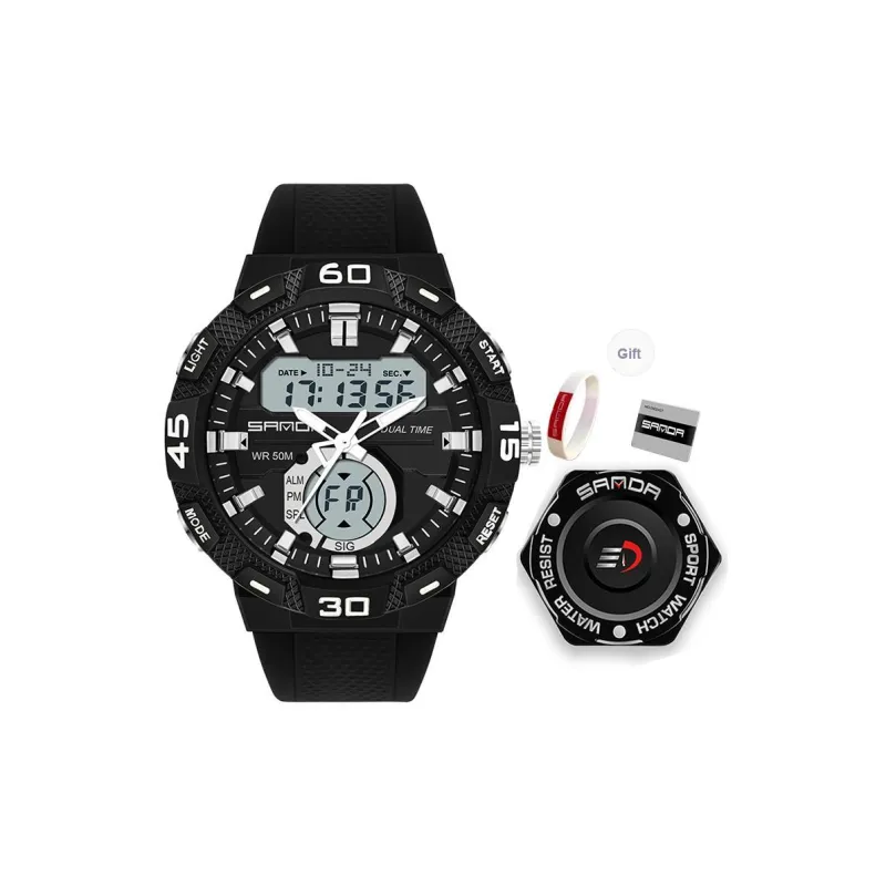 Sanda Электронный + Кварц Механизм TPU Ремешок Часы Унисекс Черный Циферблат
