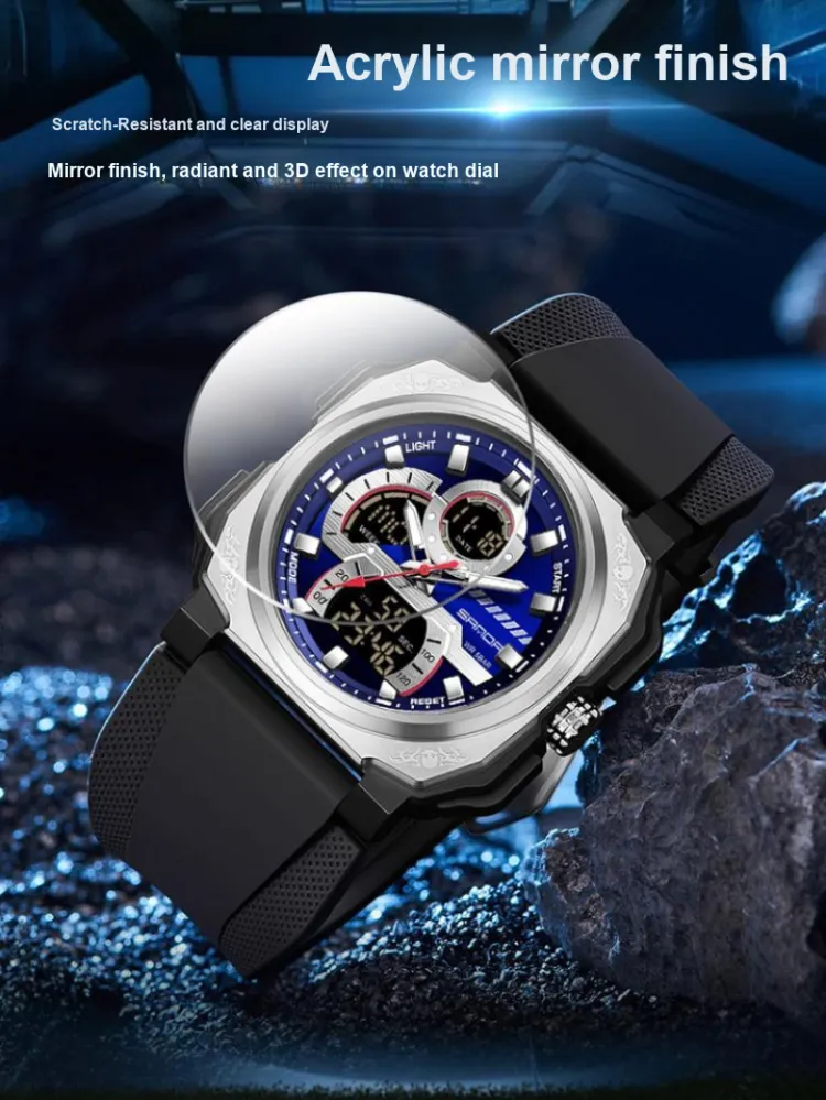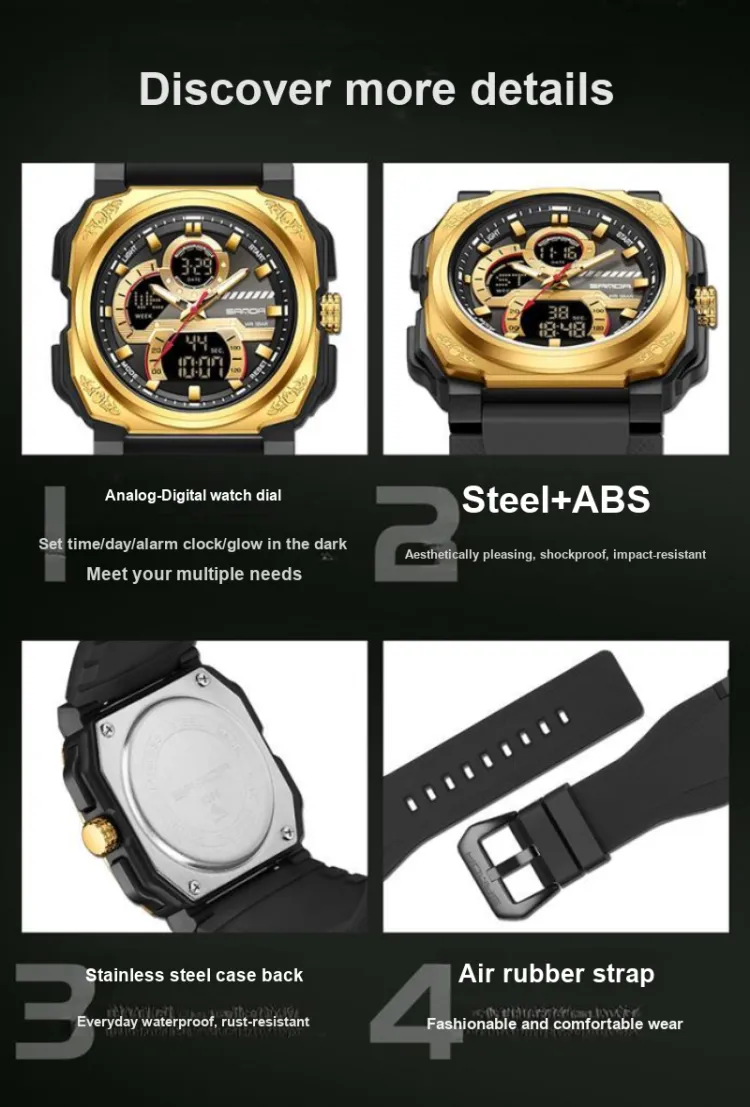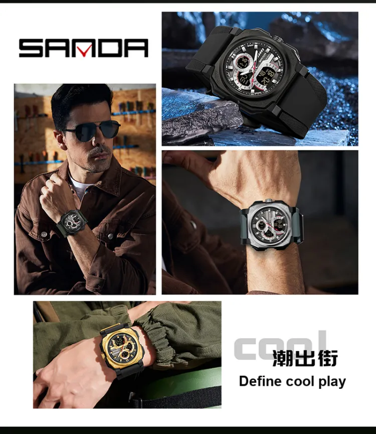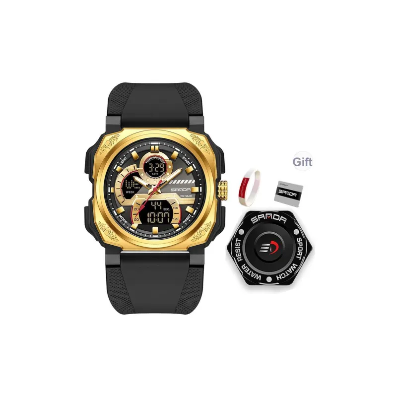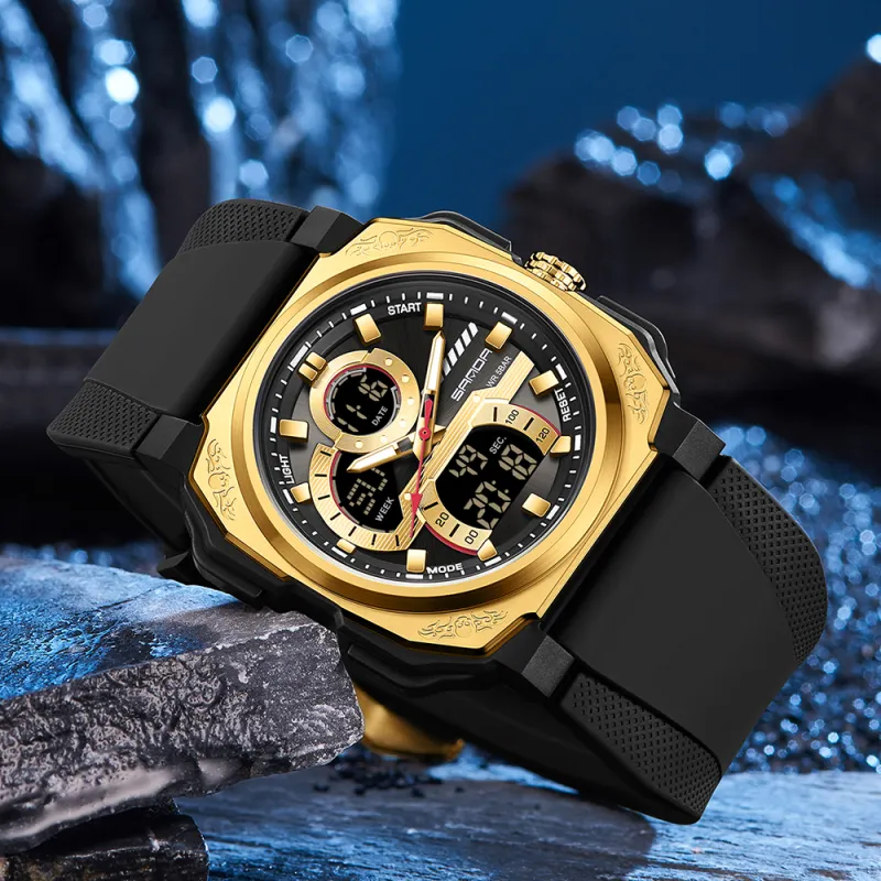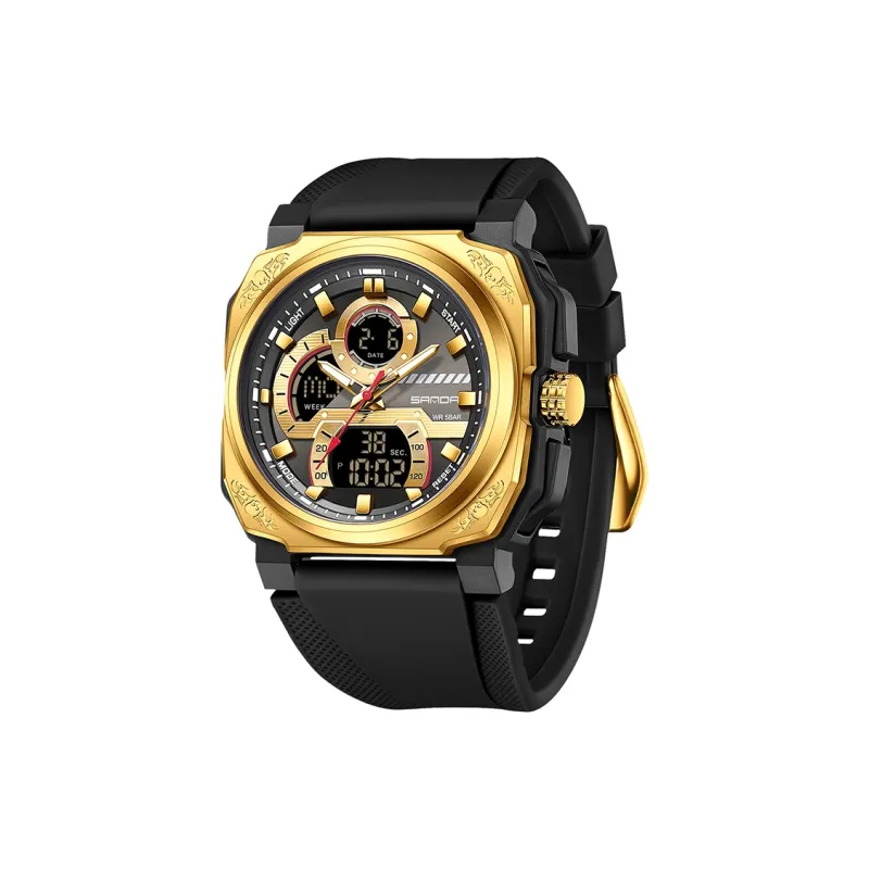 Sanda Электронные + Кварцевые Механические Часы Мужские Черный Циферблат