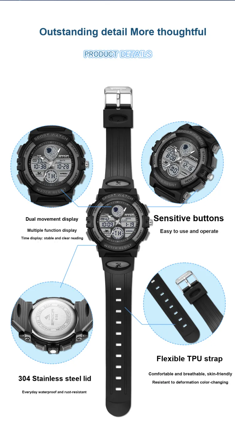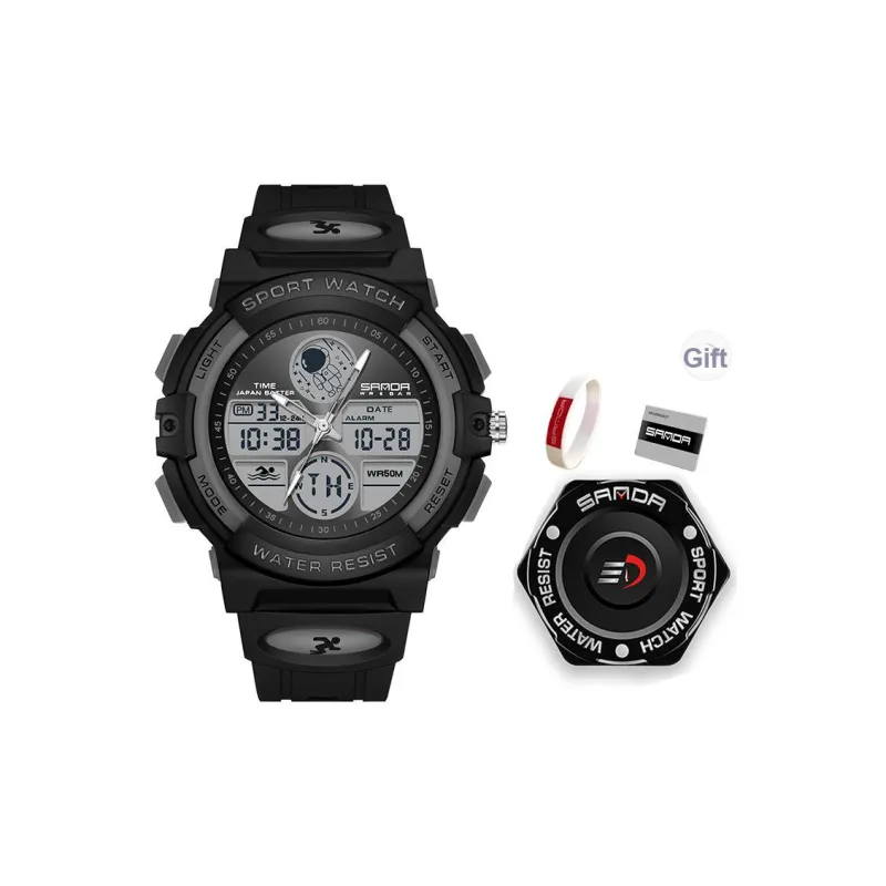 Sanda Panda Astronaut Pattern Collection Электронный + кварцевый механизм TPU ремешок Часы Унисекс Серый циферблат