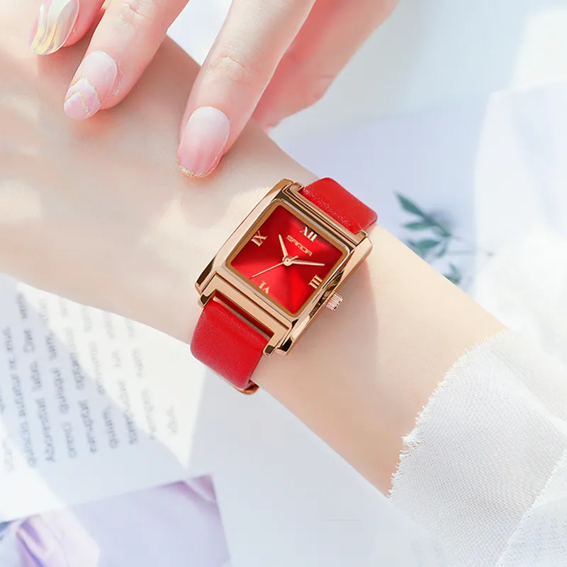 Sanda Кварцевый механизм ремешок из полиуретана женские часы золотой циферблат