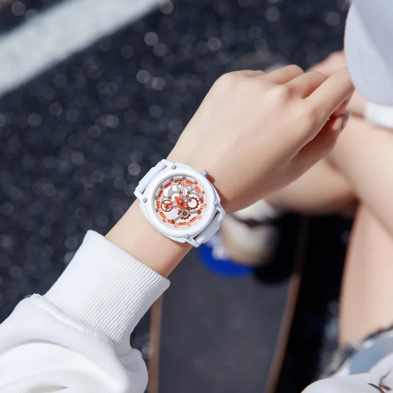 Sanda Кварцевый механизм силиконовый ремешок унисекс белый циферблат