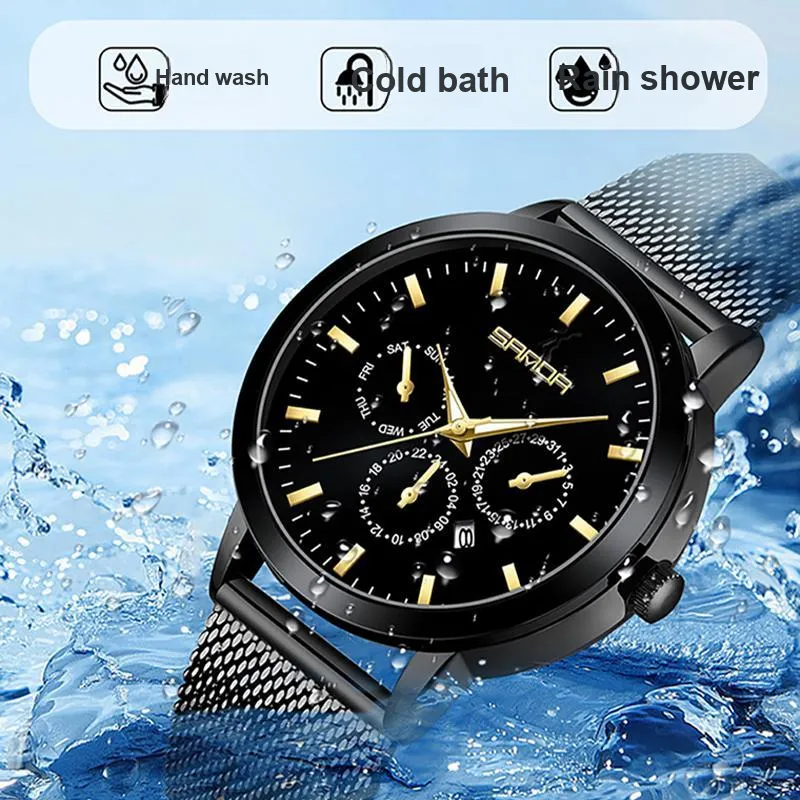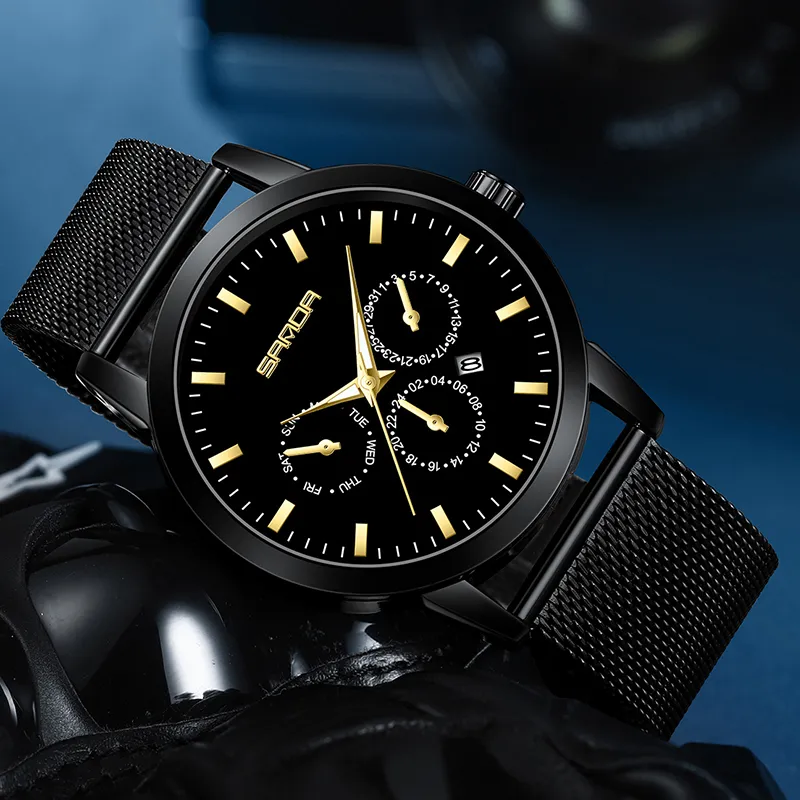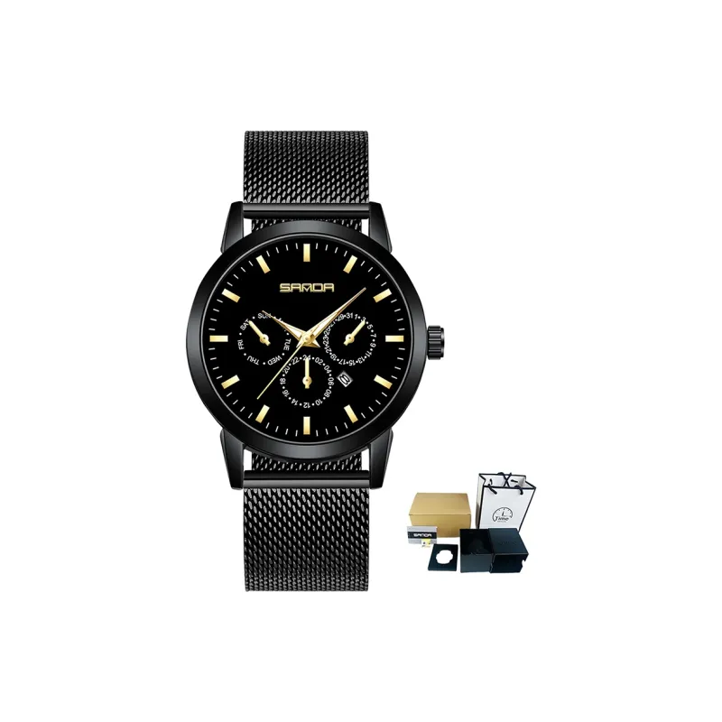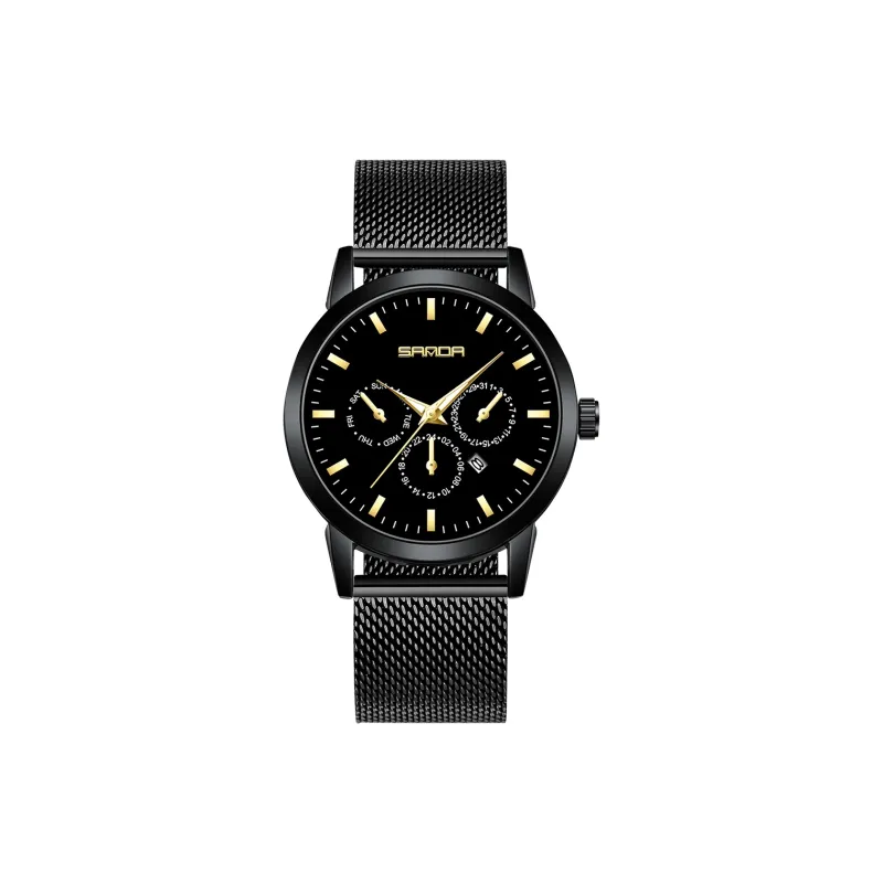 Sanda Кварцевый механизм нержавеющая сталь ремешок женские часы черный циферблат