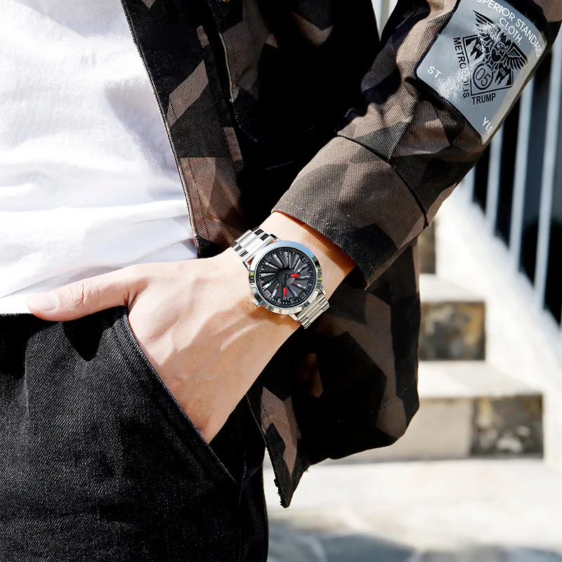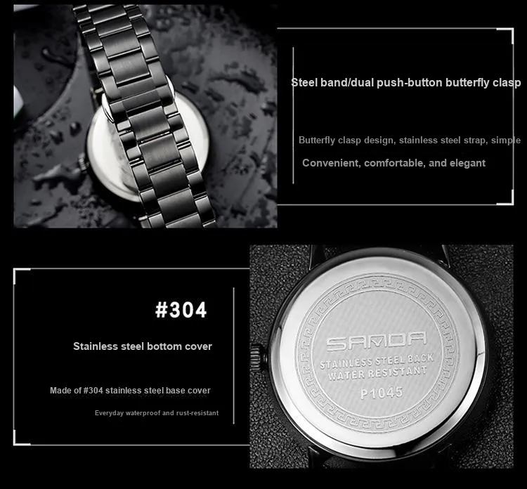 Sanda Кварцевый механизм стальной ремешок мужские часы черный циферблат