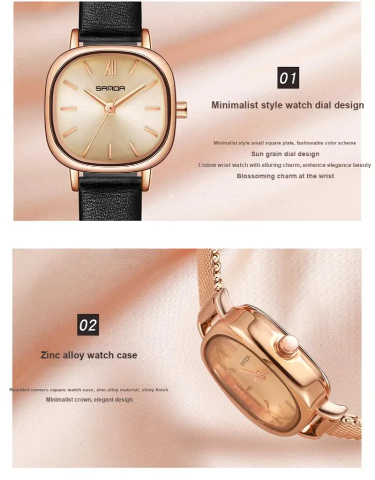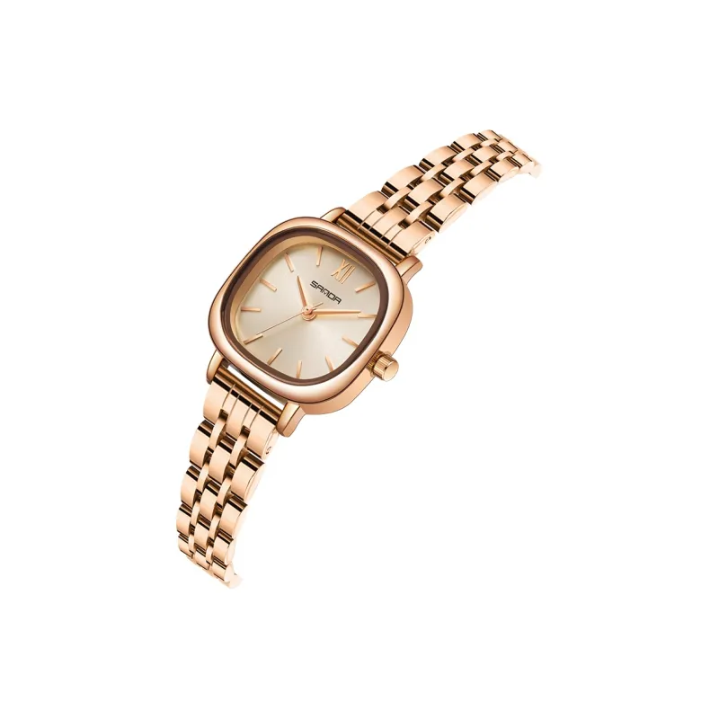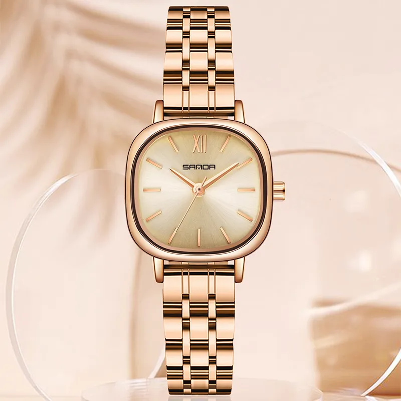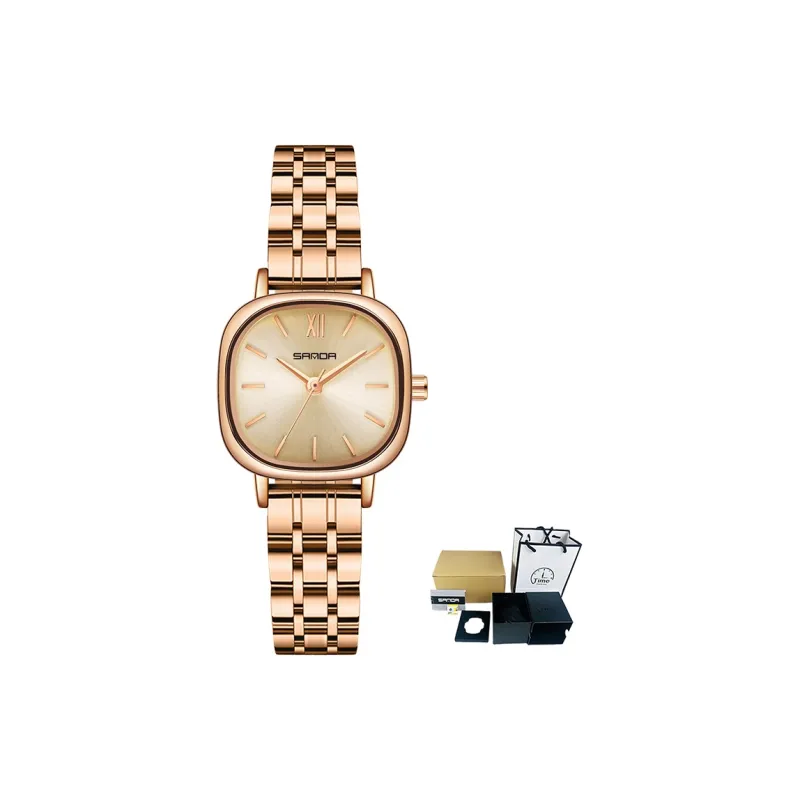 Sanda Кварцевый механизм стальной ремешок женские часы золотой циферблат