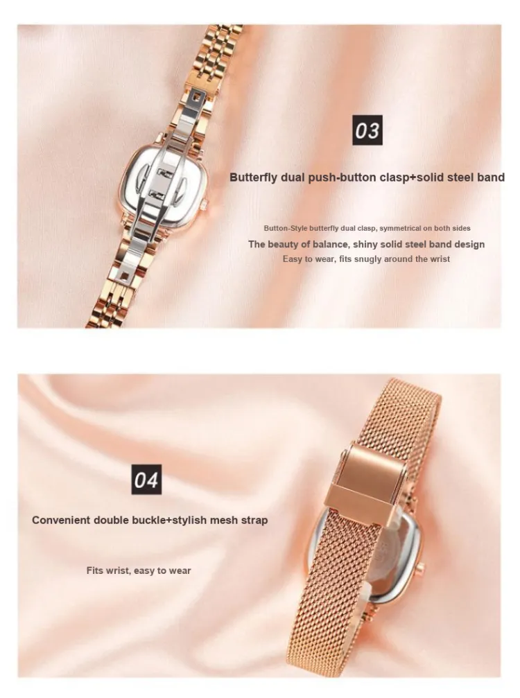 Циферблат Цвет:Розово-золотой тон, стальной браслет