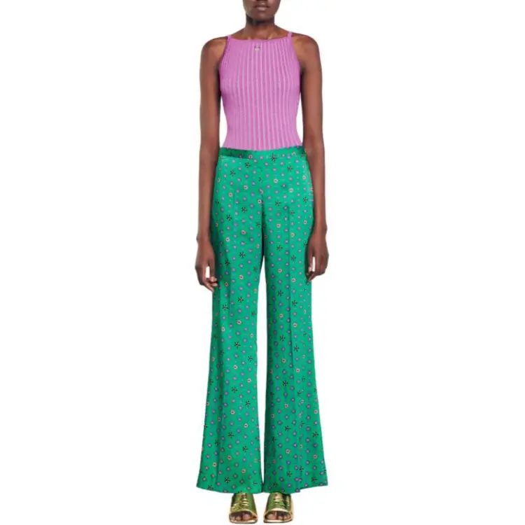 Sandro Floaty Узорные Брюки Повседневные Брюки Женские Зеленые