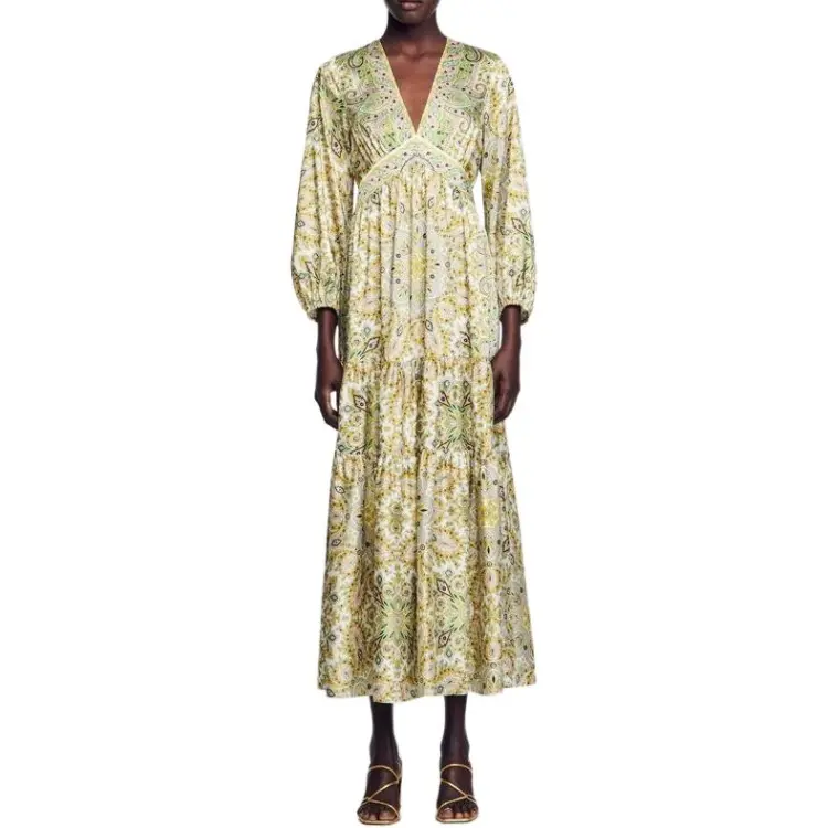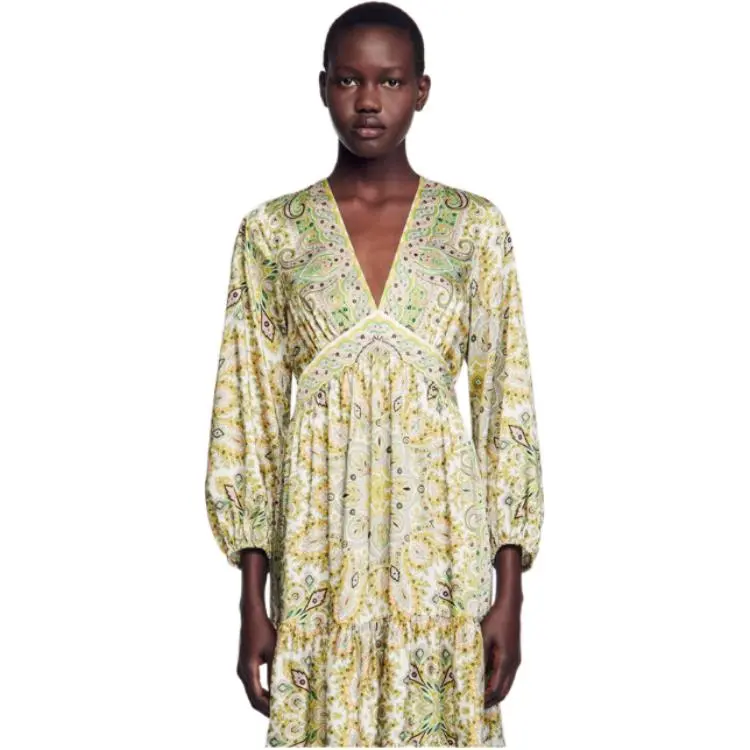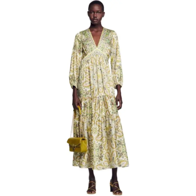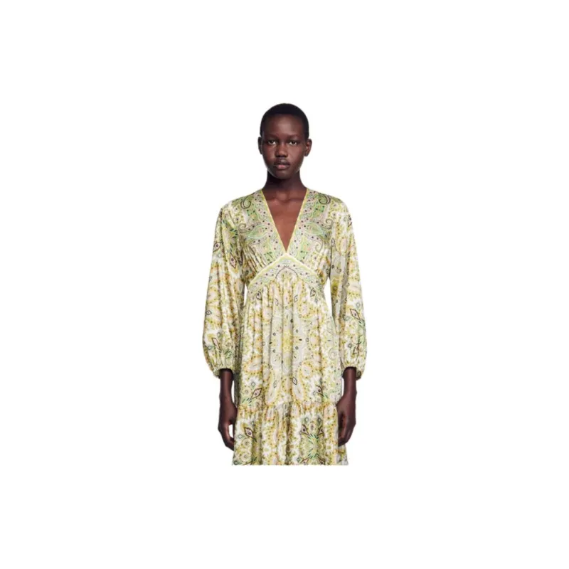 Sandro Длинное платье с длинными рукавами женское многоцветное