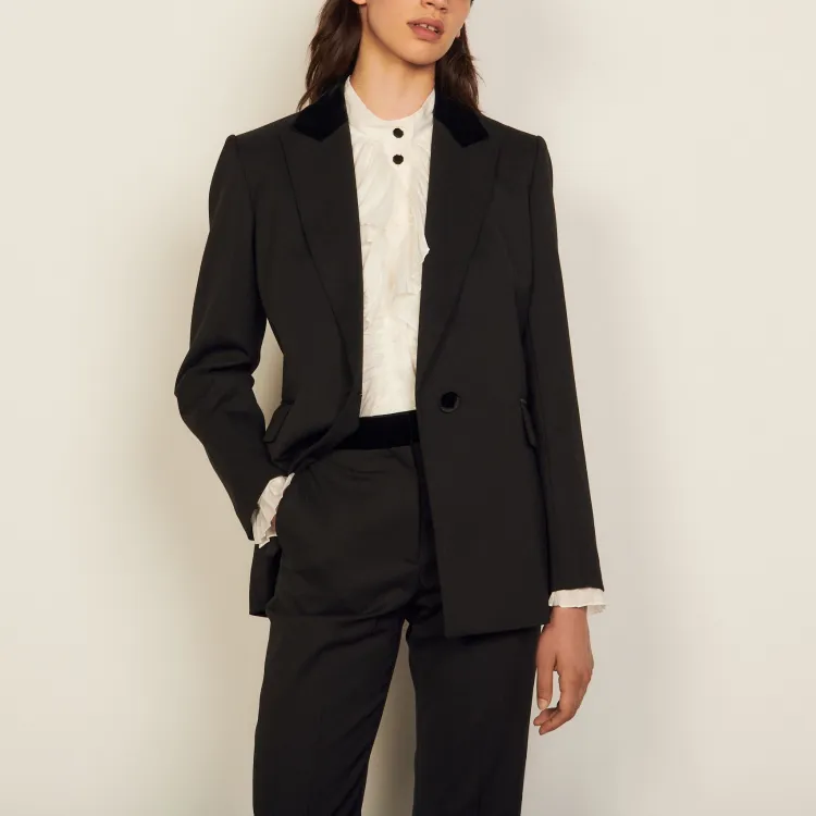 Sandro Tailored Куртка Бизнес Костюм Пальто Женское Черное