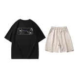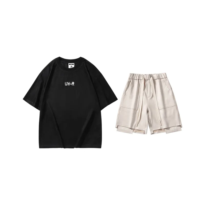 Комплект:Комплект (Черный топ + Абрикосовые белые штаны)