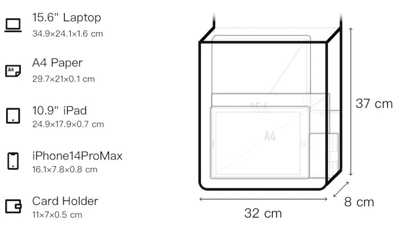 Длина 32 см * Ширина 8 см * Высота 37 см