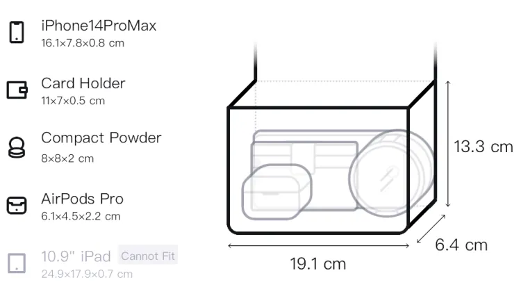Длина (размер в длину): 19,05 см, Ширина корпуса: 6,35 см, Длина корпуса: 13,33 см; Мелочь Кошелек: Длина (размер в длину): 11,43 см, Длина корпуса: 10,16 см