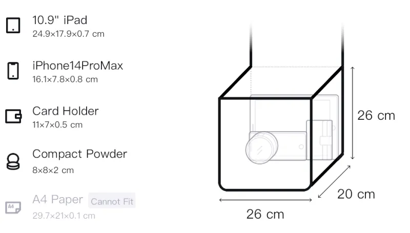 Длина (размер в длину) 26 см, Ширина 20 см, Рекомендуемая высота 26 см