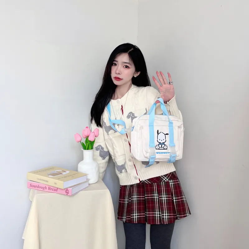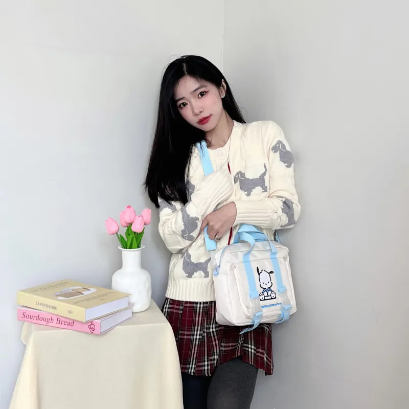 Sanrio Pacha Dogs Холст Сумка через плечо Ручная Портативная Сумка для макияжа Женская Синяя
