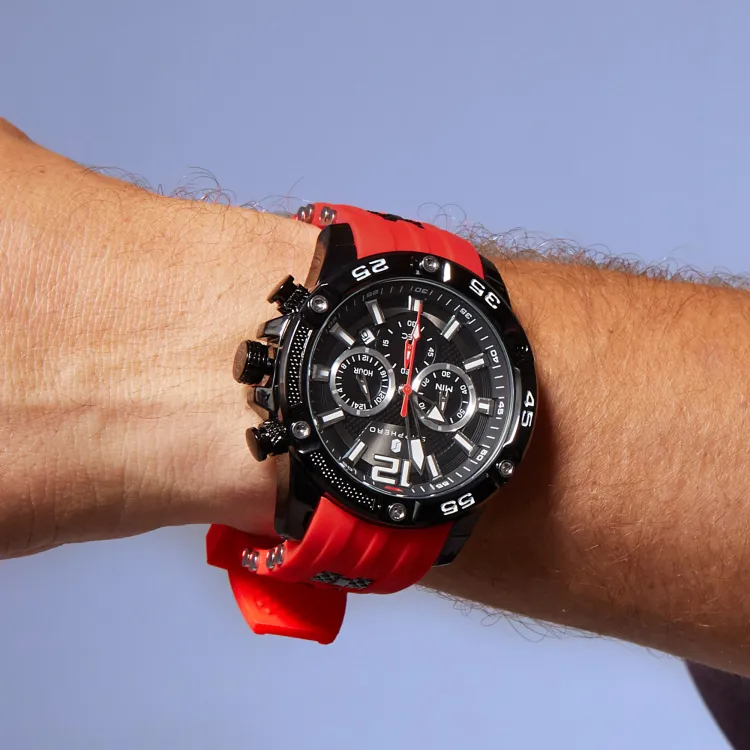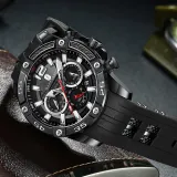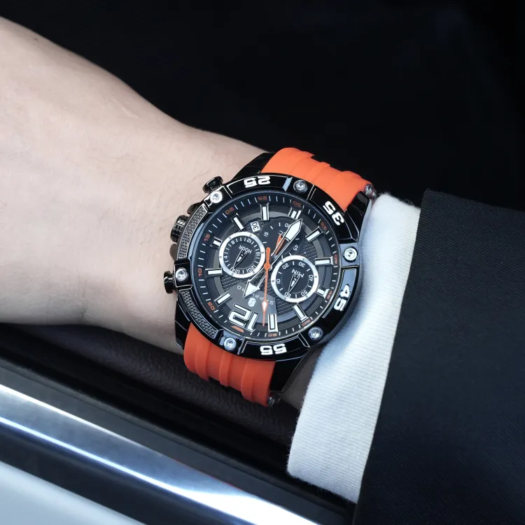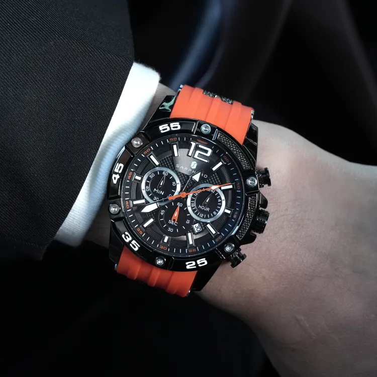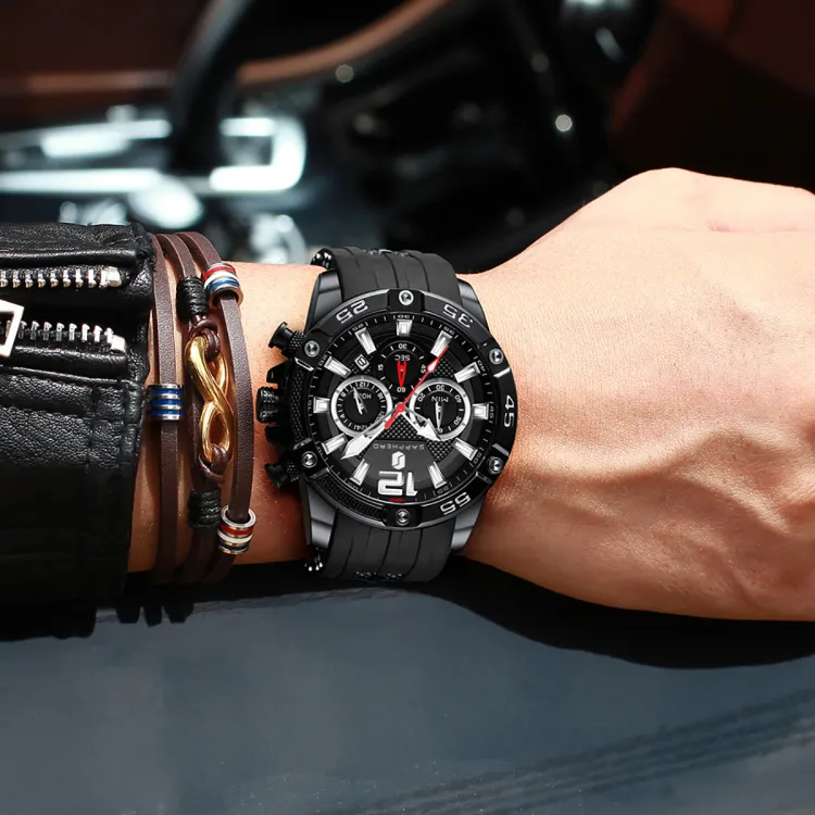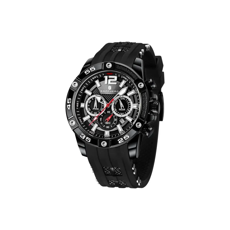 SAPPHERO Collection Simulation Timers Кварцевый механизм Силиконовый ремешок Часы Мужские Черный циферблат