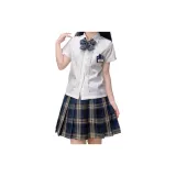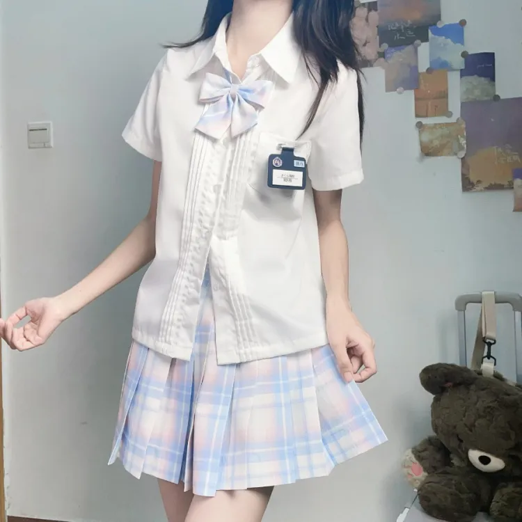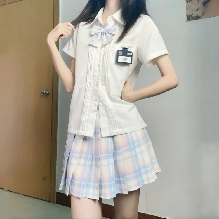 Цвет:Плиссированная рубашка с коротким рукавом, белого цвета + маленькая юбка в клетку + боксерские шорты + галстуки-бабочки + новый значок на груди JK