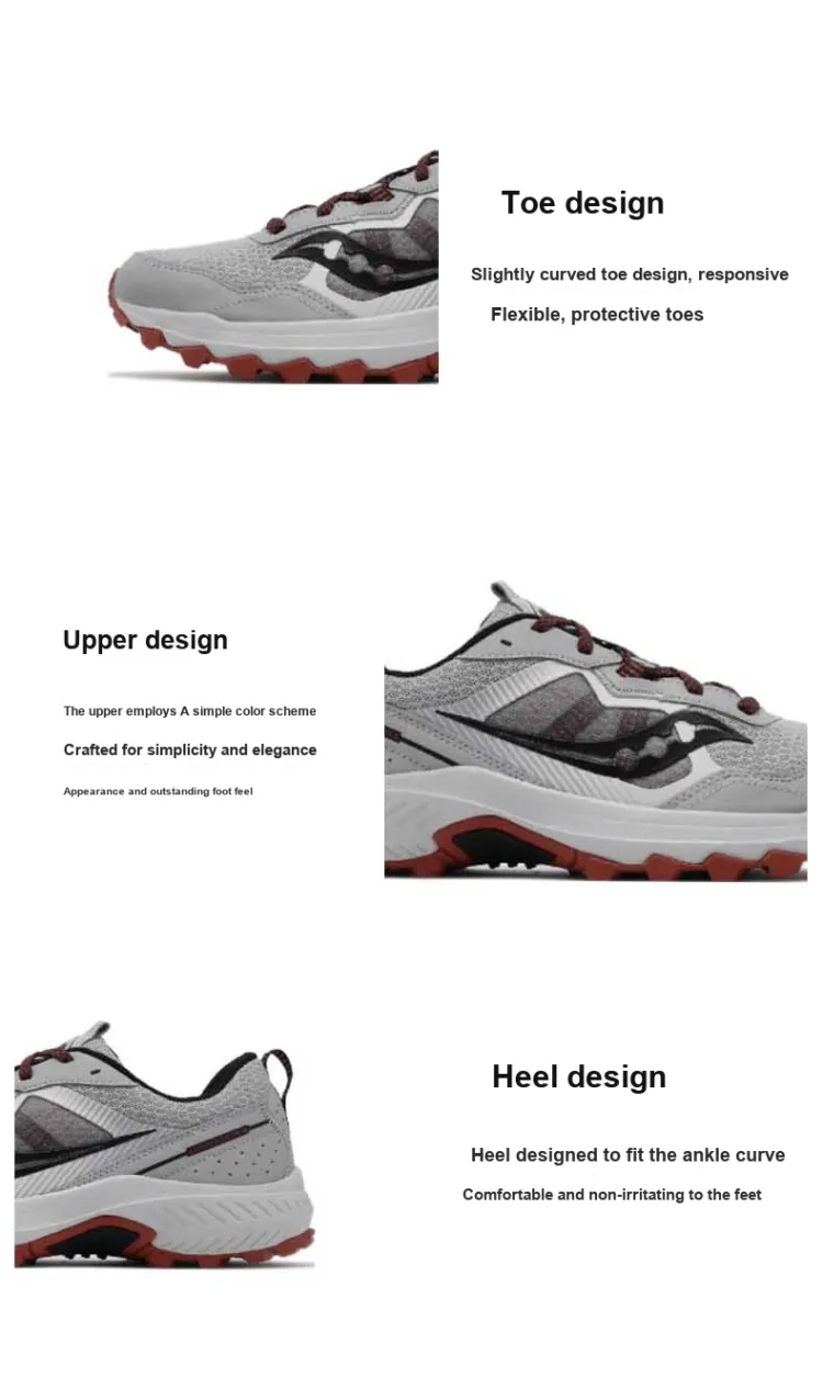 Saucony Excursion Slip-Resistant Abrasion-Resistant Low-Top Беговые кроссовки Мужские Серый Красный
