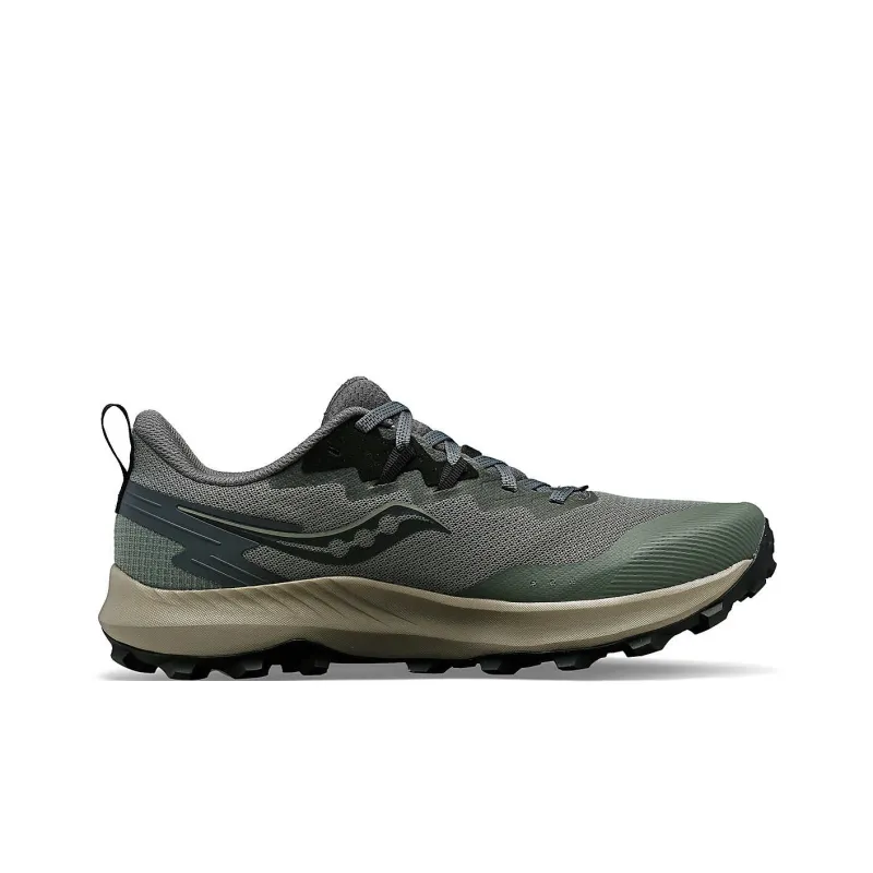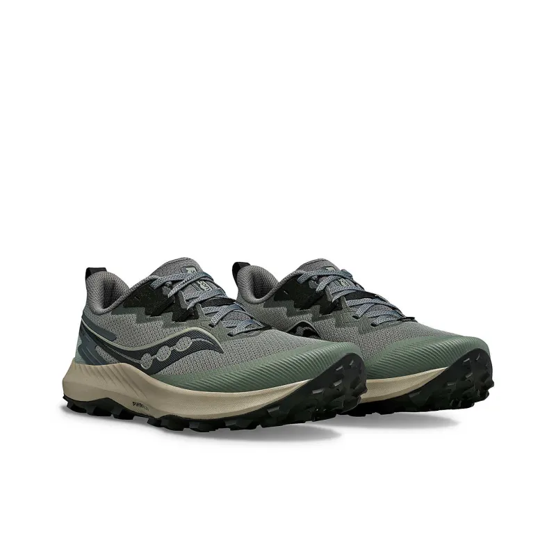Saucony PEREGRINE 14 Амортизирующие низкие беговые кроссовки с противоскользящим покрытием мужские серо-зеленые