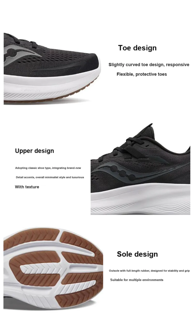 Saucony Ride 15 Противоскользящие устойчивые к истиранию низкий топ беговые кроссовки Черный Белый