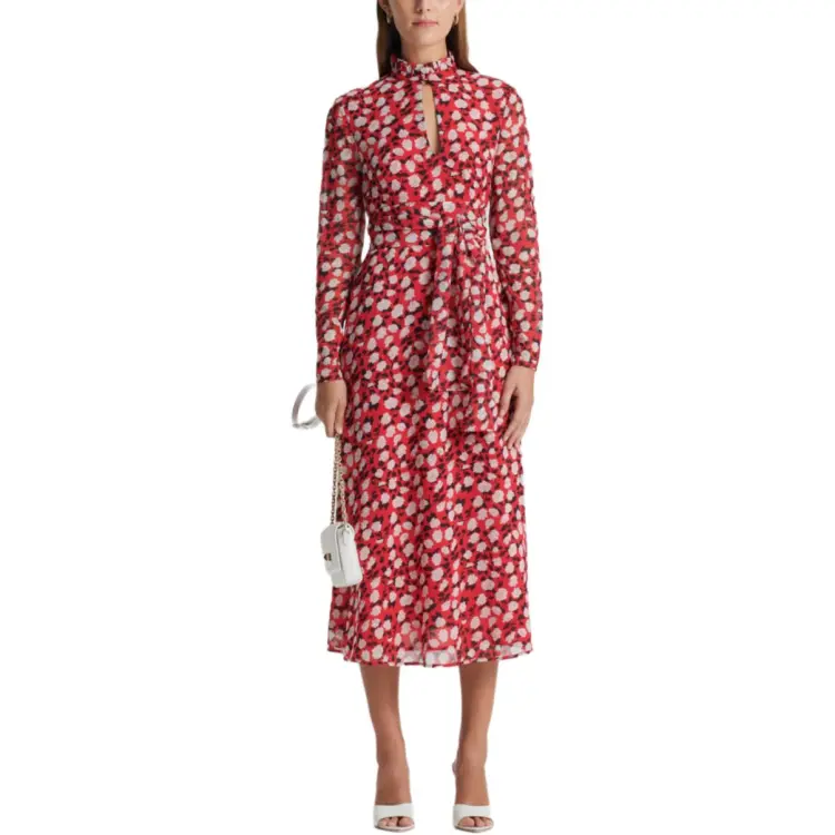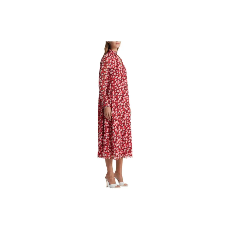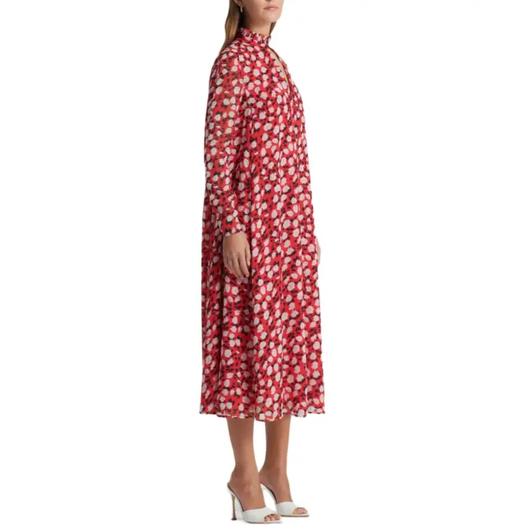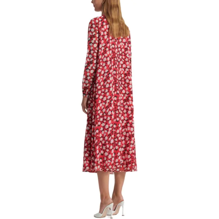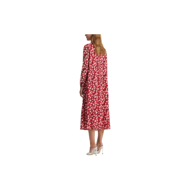 SCANLAN THEODORE Шелк Georgette Розовый С принтом Платье Длинное с рукавами Платье Женское Малиновый Малиновый