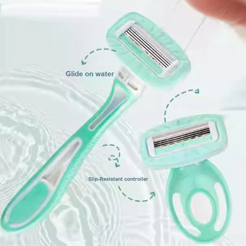 Зеленый длинный ручной бритва для маленьких мыльных головок