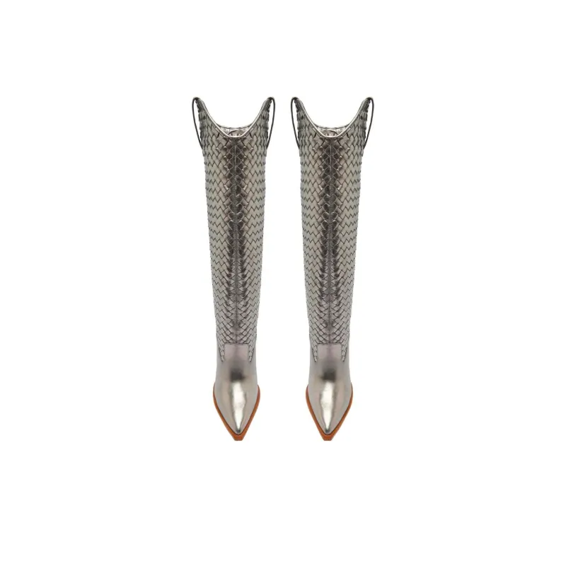 Schutz Ellas Колено Высокие сапоги 9,3 см Женские Серебряные