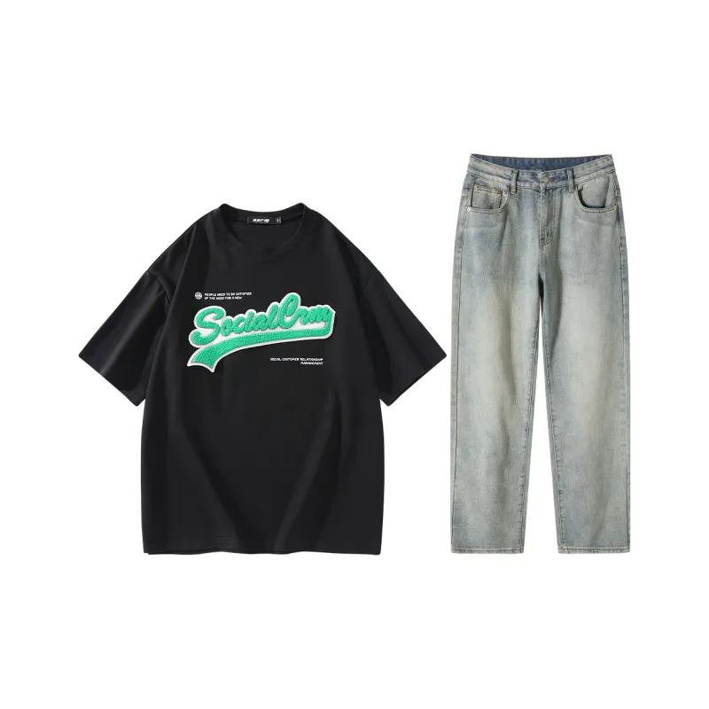 Комплект одежды (Черная рубашка с коротким рукавом + джинсы)