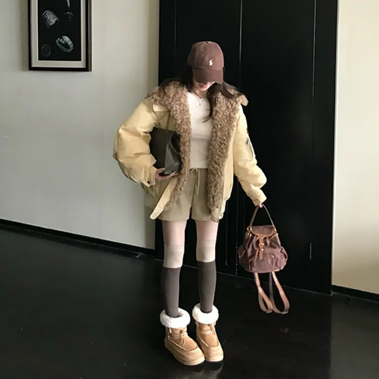 SDN by41 Хаки и Коричневый Женские Пуховики