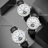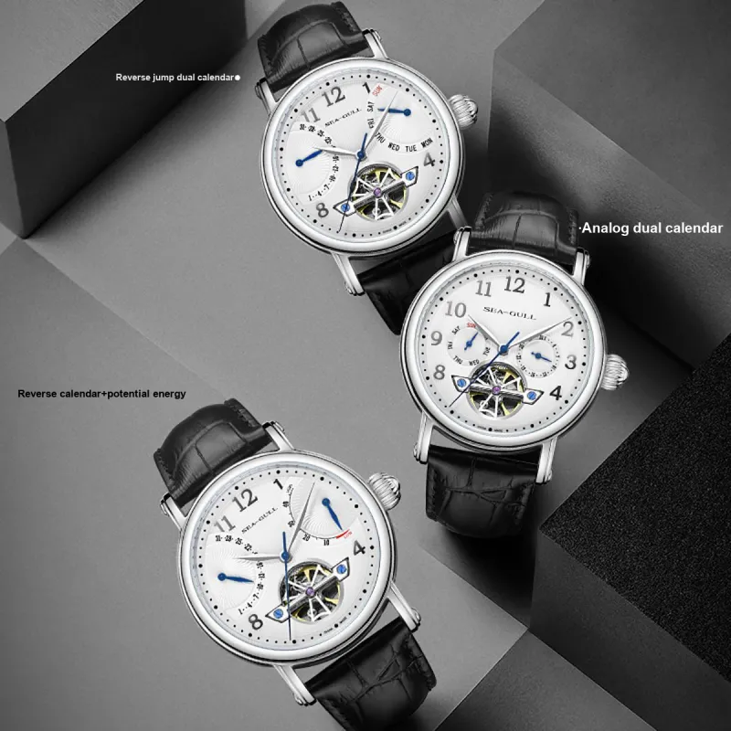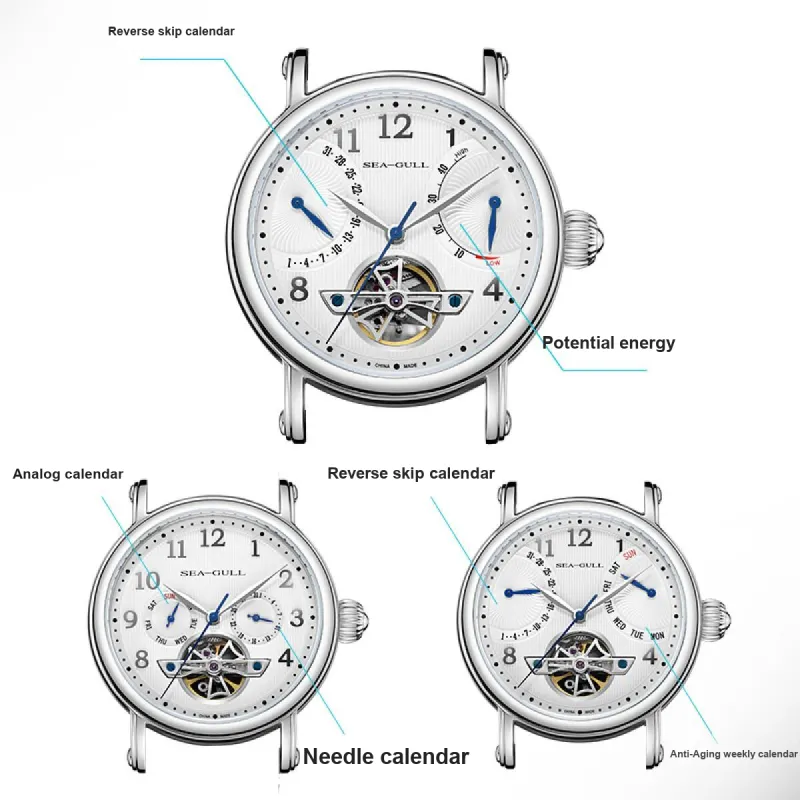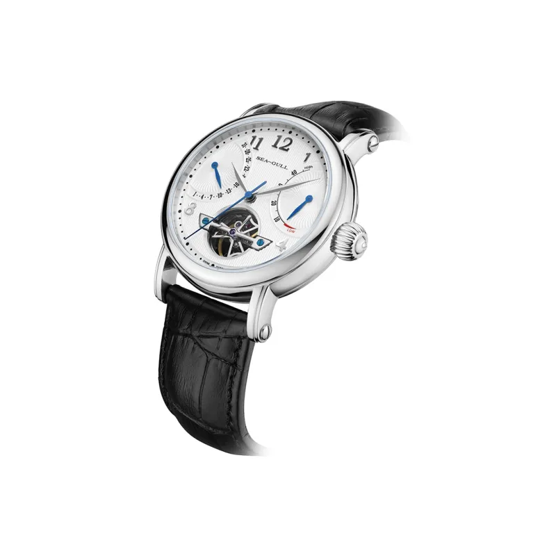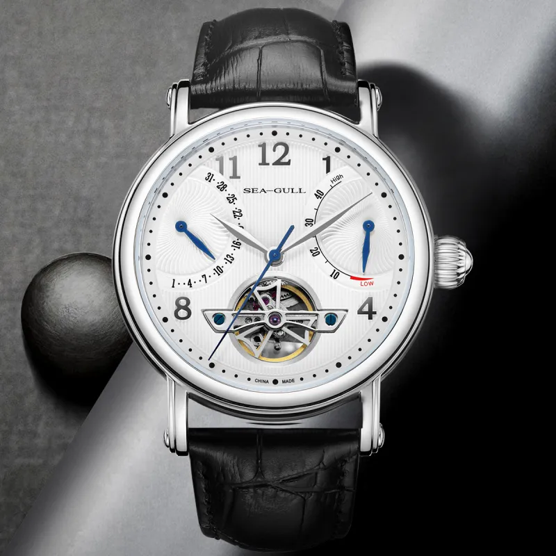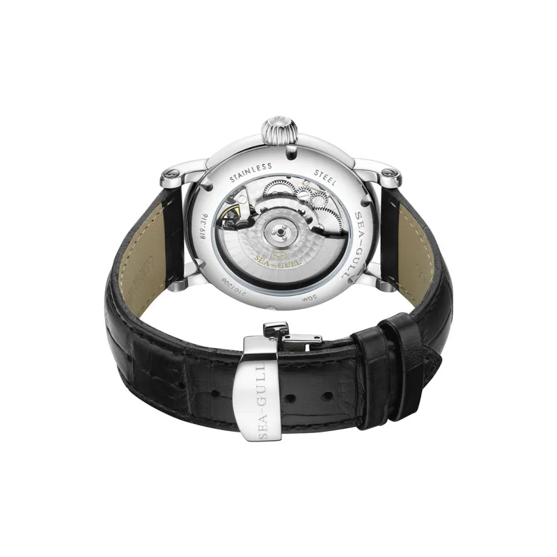 Sea Gull Автоматический Механический Механизм Естественная Кожа Ремешок Часы Мужские Белый Циферблат