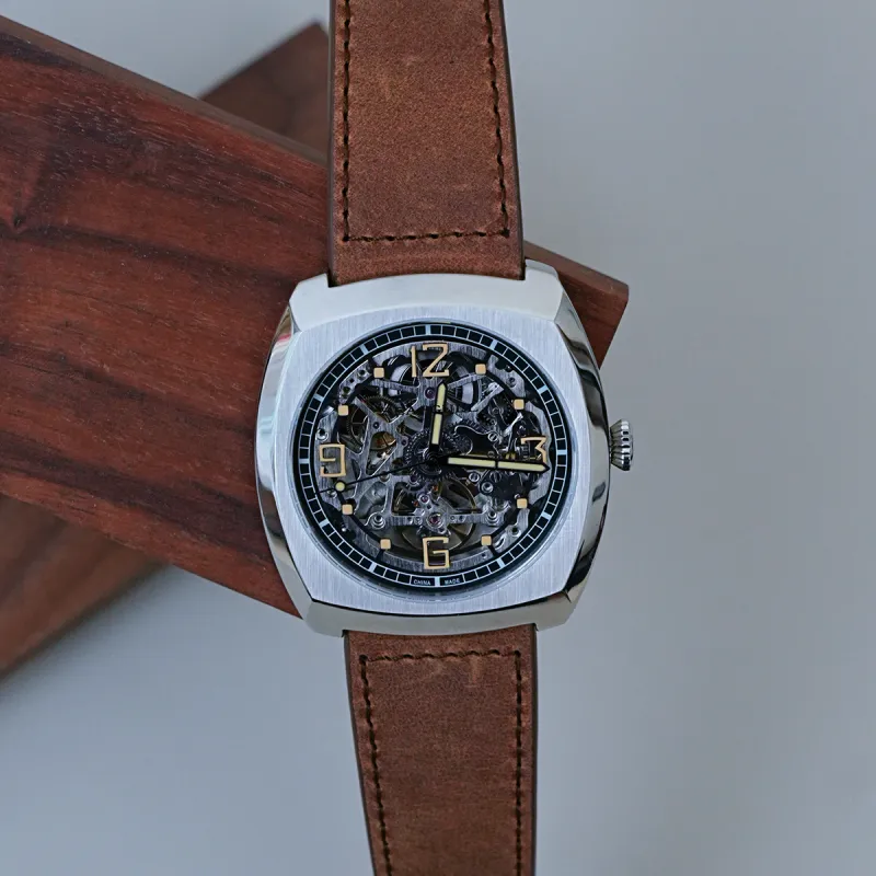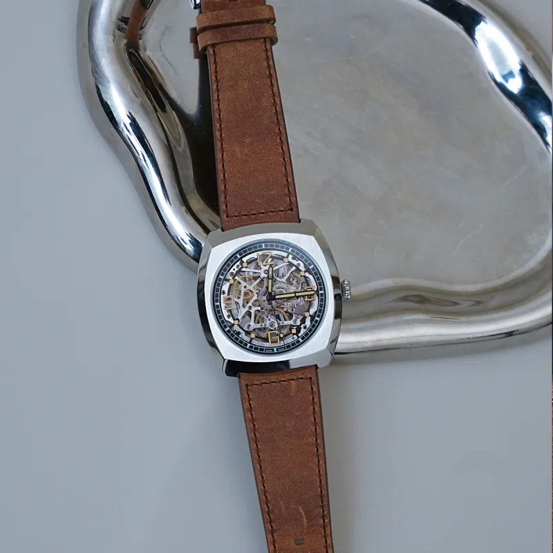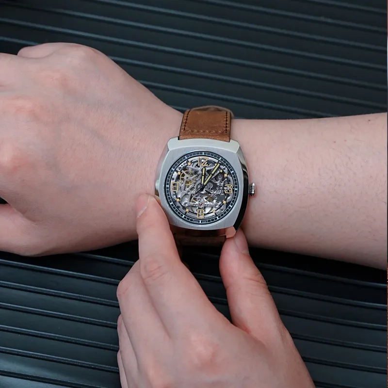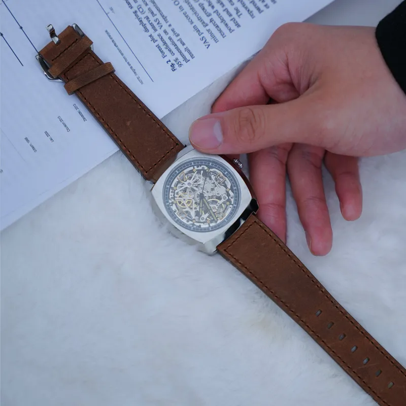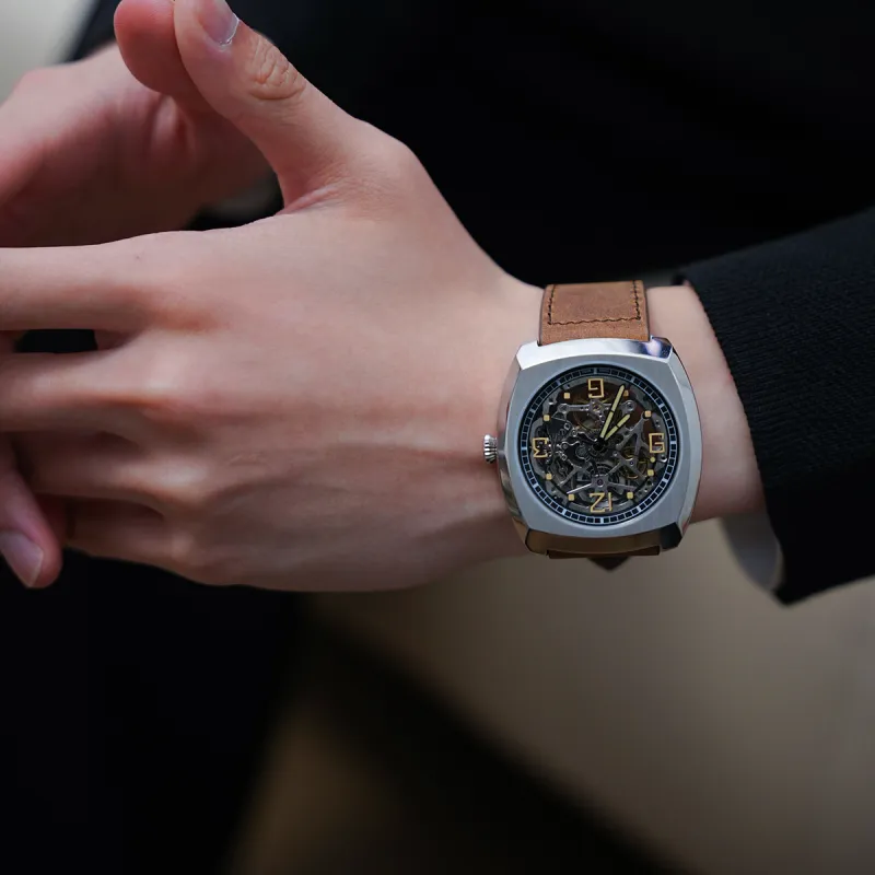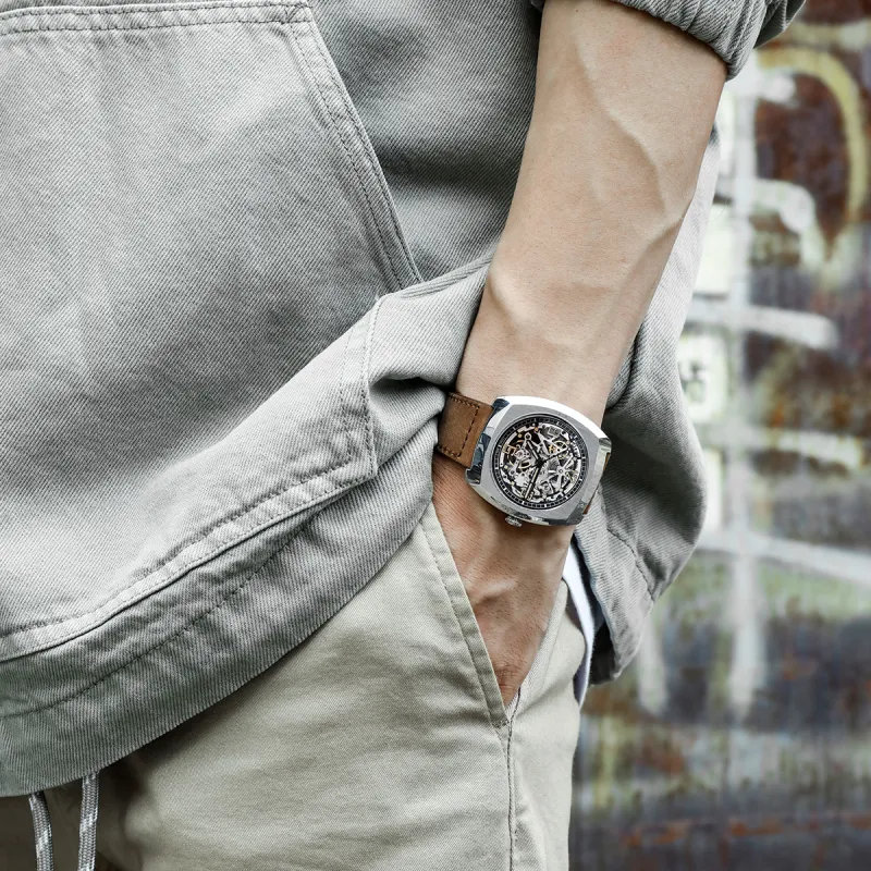 Sea Gull Edge Collection Автоматический Механический Механизм Часы с Естественной Кожей Ремешок Часы Мужские Черепный Циферблат