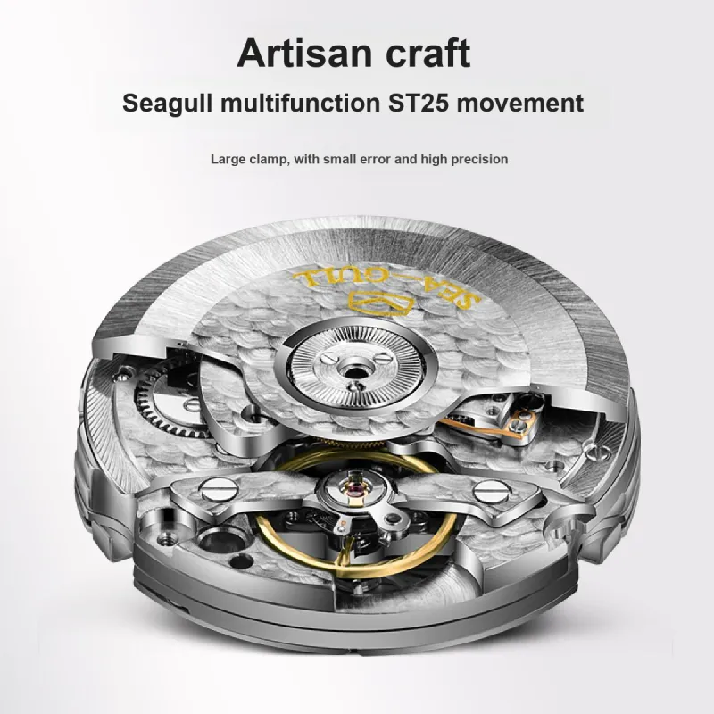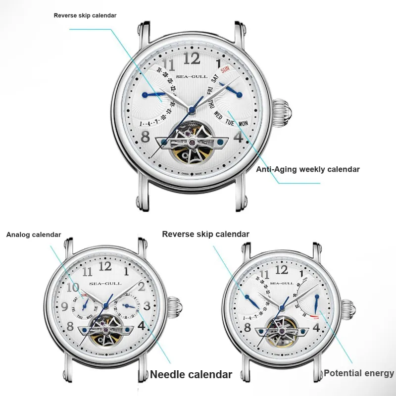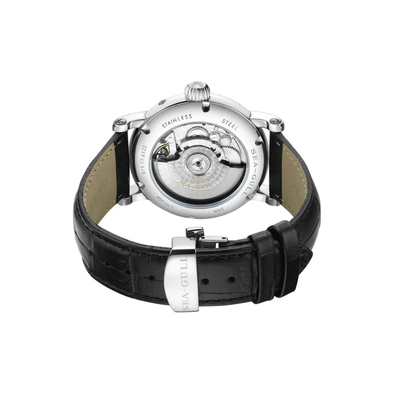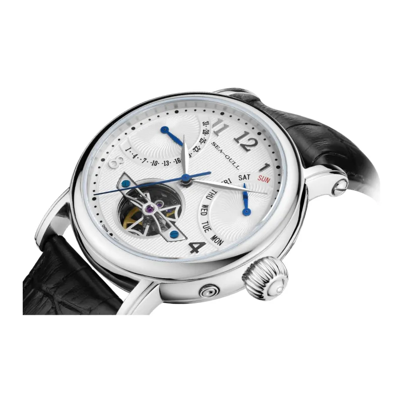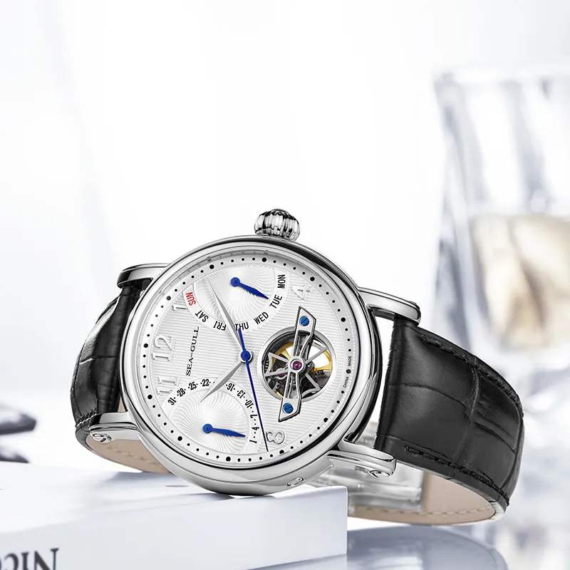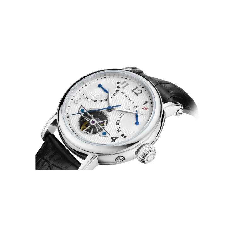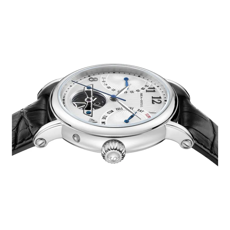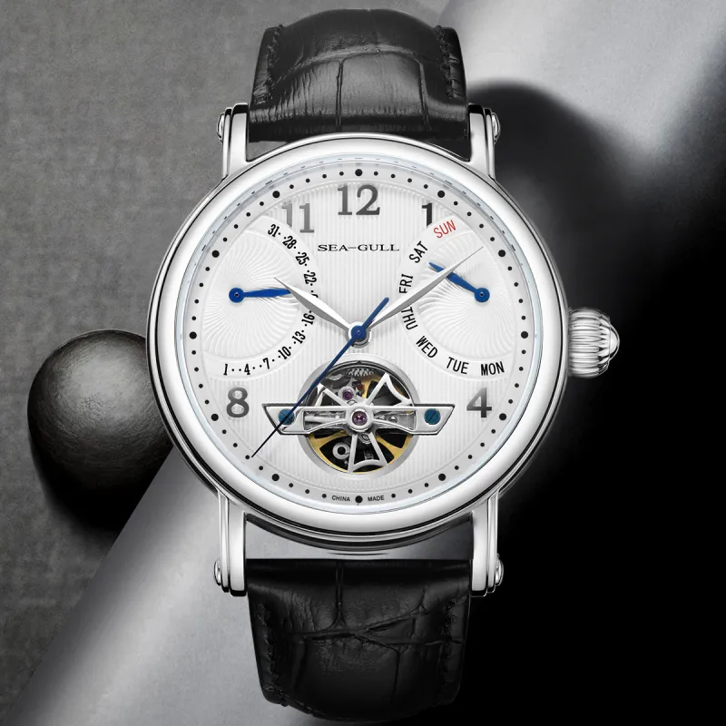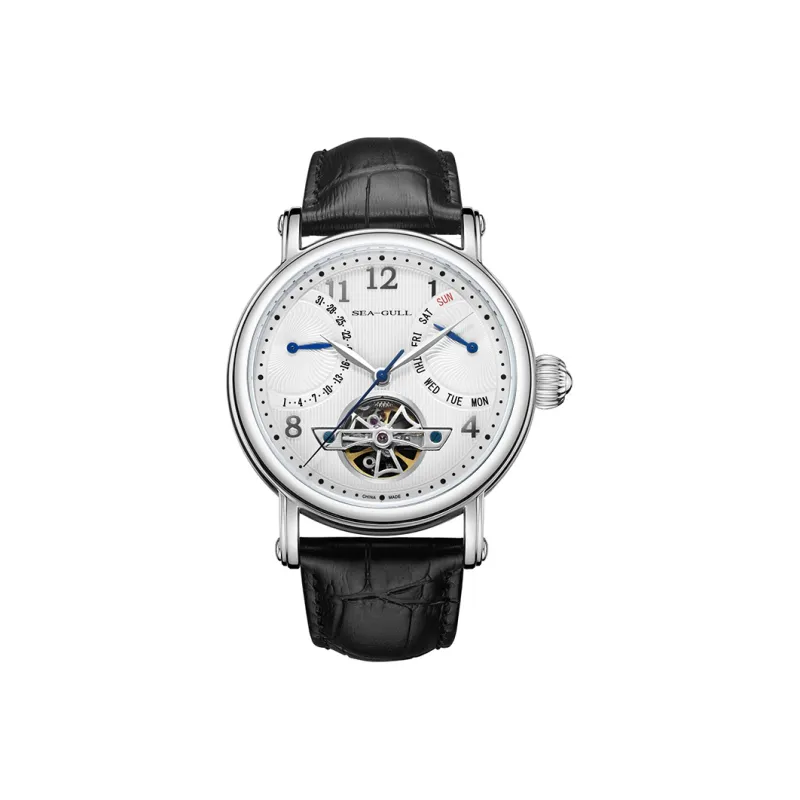 Sea Gull LE BRASSUS Автоматический Механический Механизм Естественная Кожа Ремешок Часы Мужские Белый Циферблат