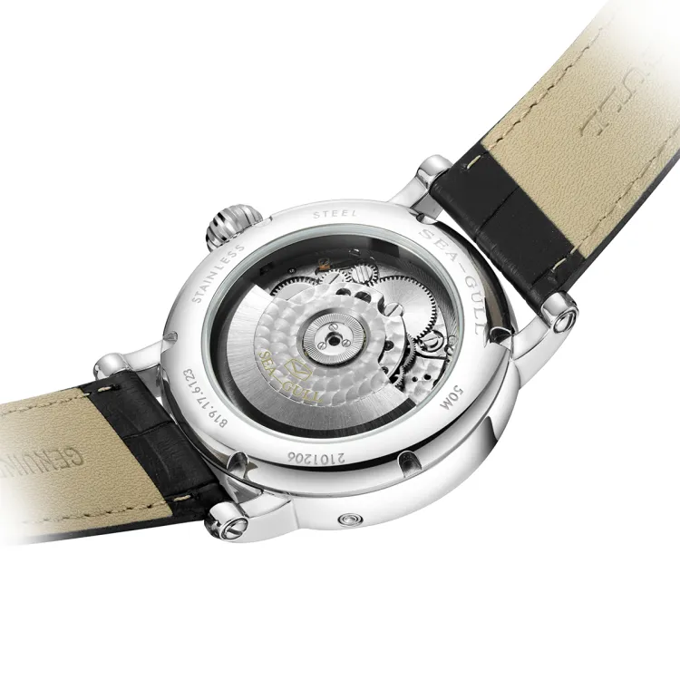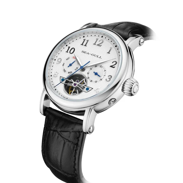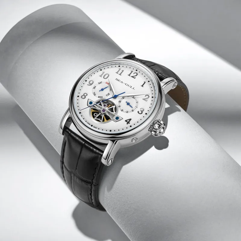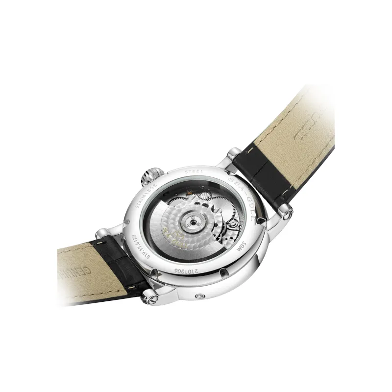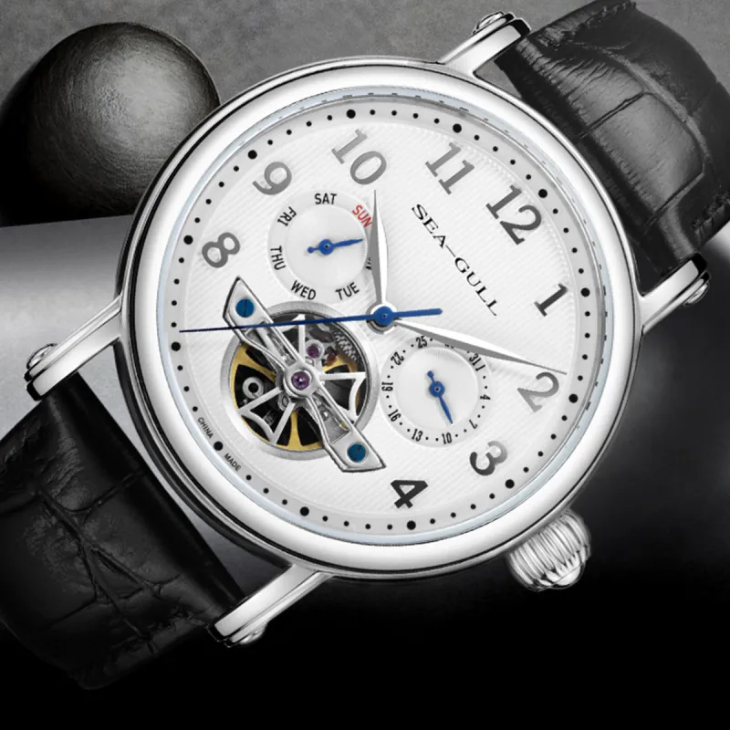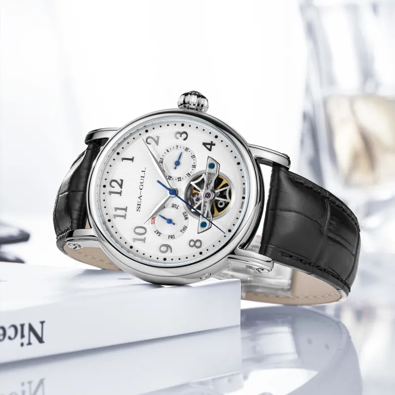 Sea Gull LE BRASSUS Автоматический Механический Механизм Естественная Кожа Ремешок Часы Мужские Белый Циферблат