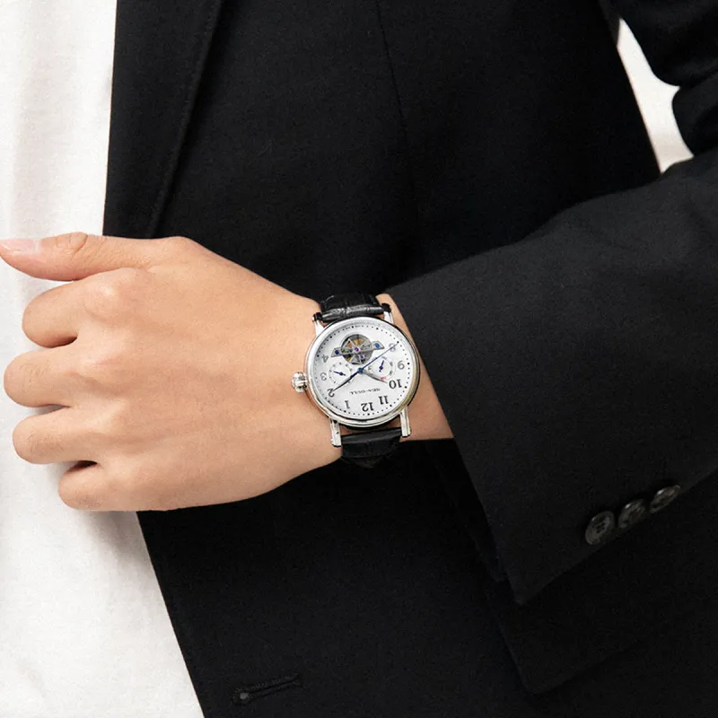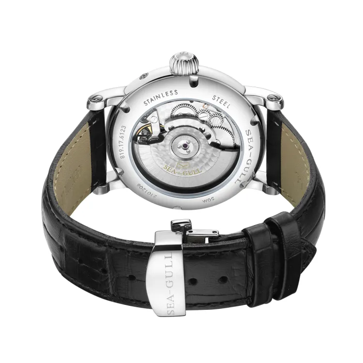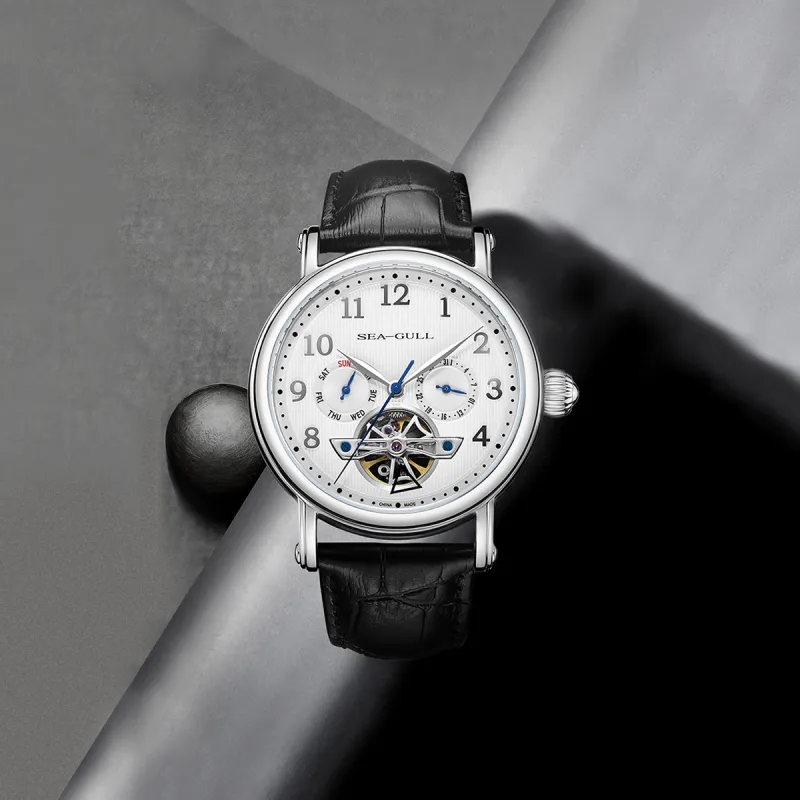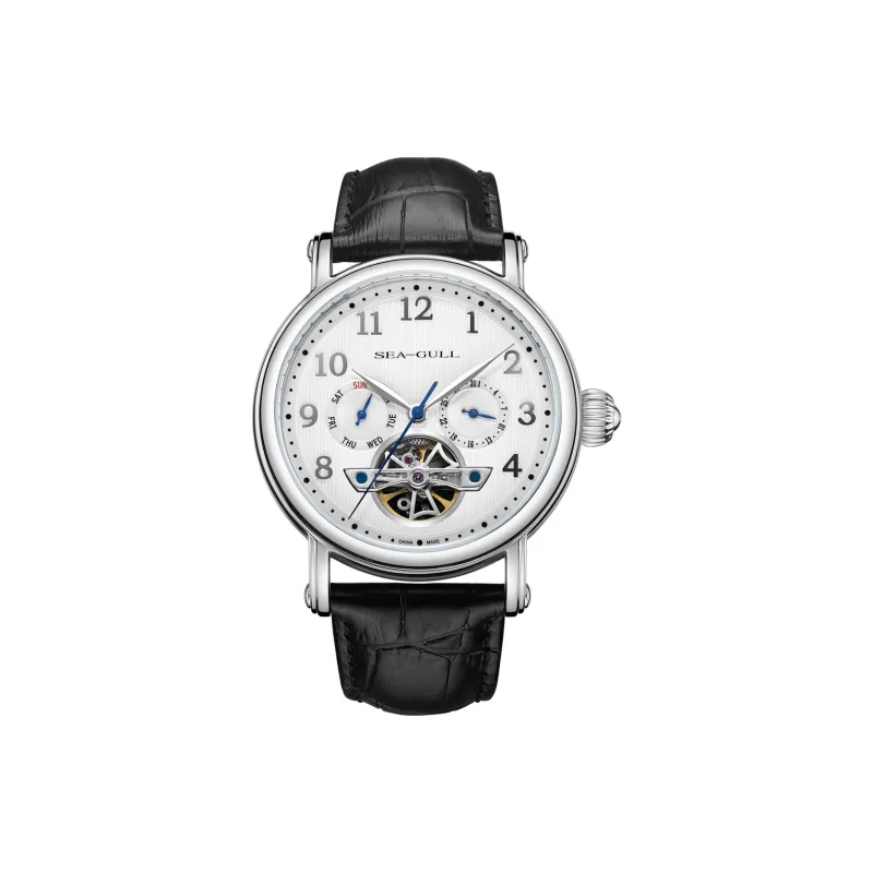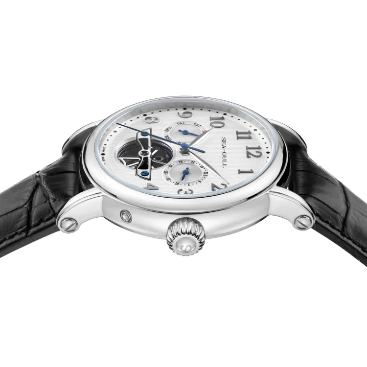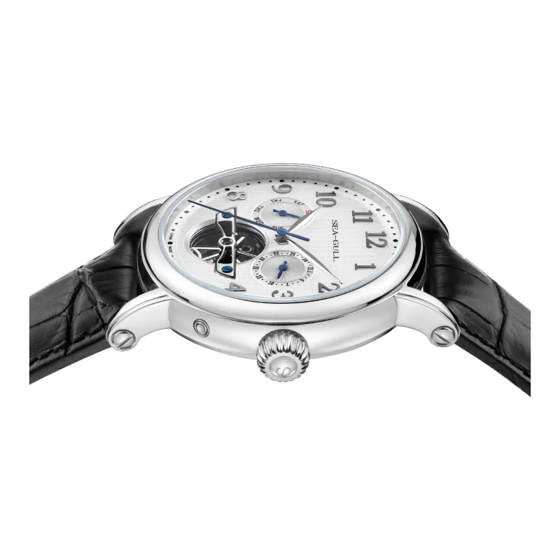 Sea Gull LE BRASSUS Автоматический Механический Механизм Естественная Кожа Ремешок Часы Мужские Белый Циферблат