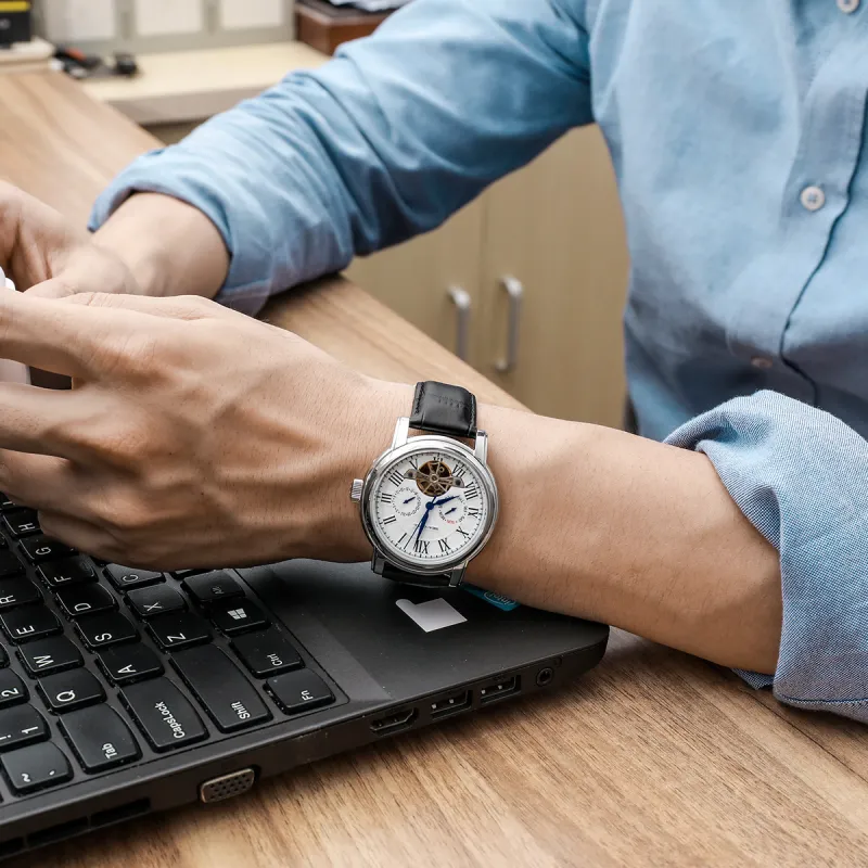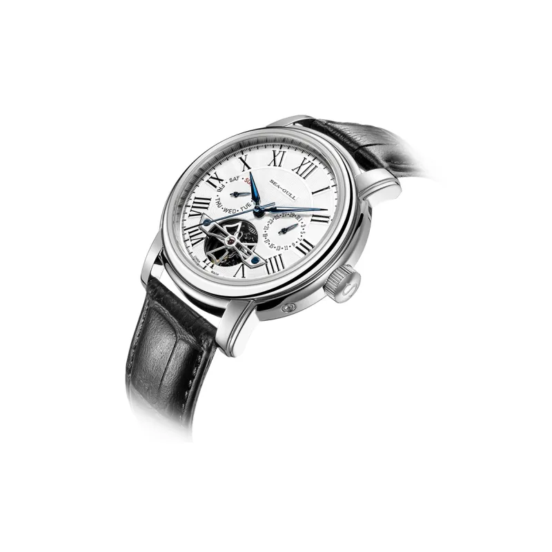 Sea Gull LE BRASSUS Автоматический Механический Механизм Часы с Естественной Кожей Ремешок Унисекс Белый Циферблат