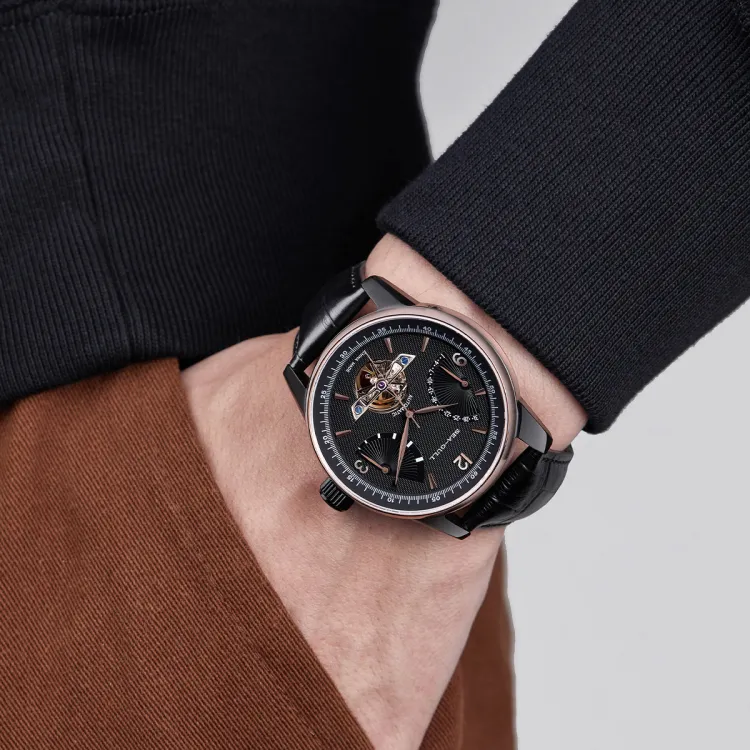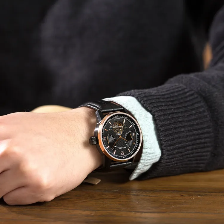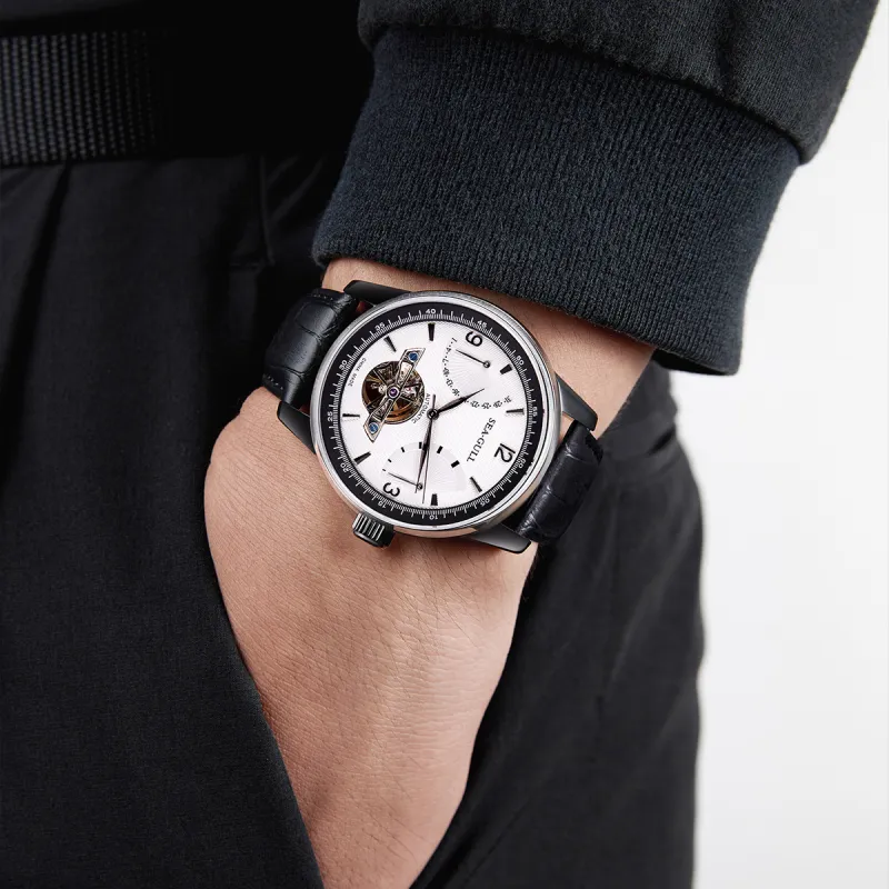 Sea Gull LE BRASSUS Автоматический Механический Механизм Часы Мужские Черный Циферблат