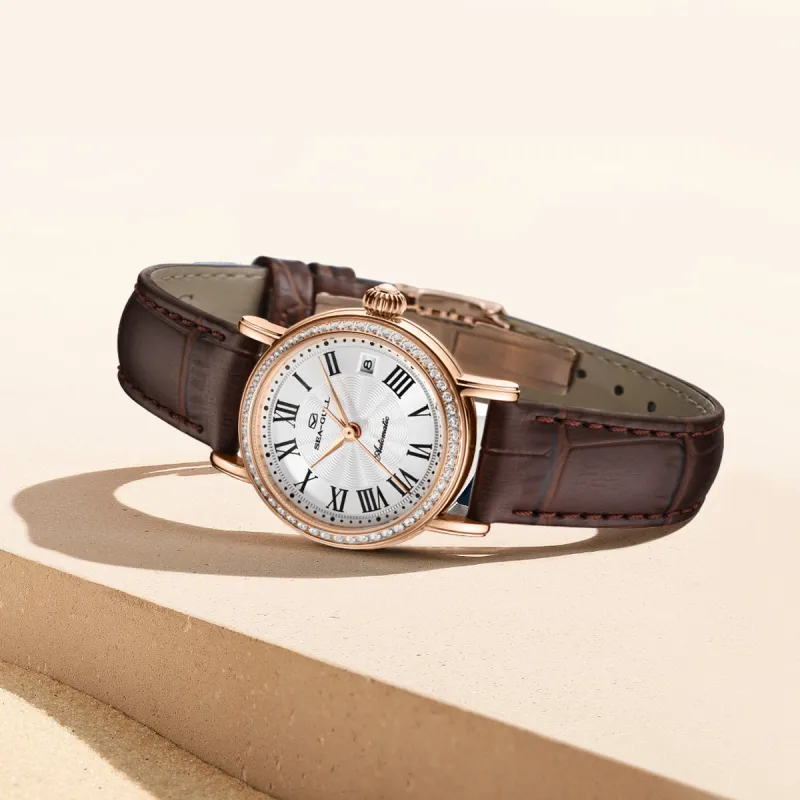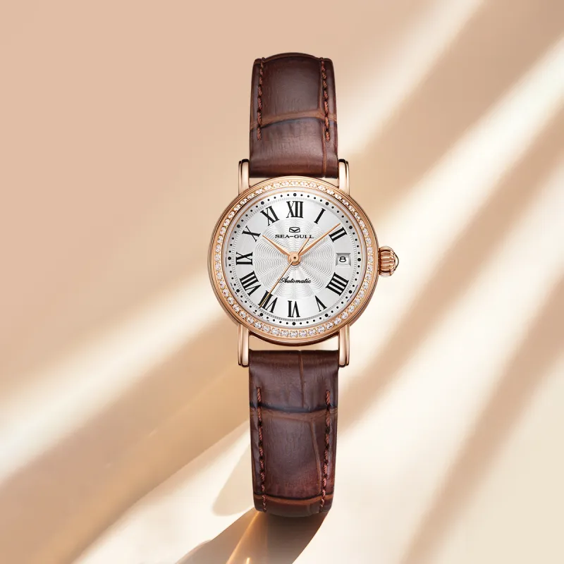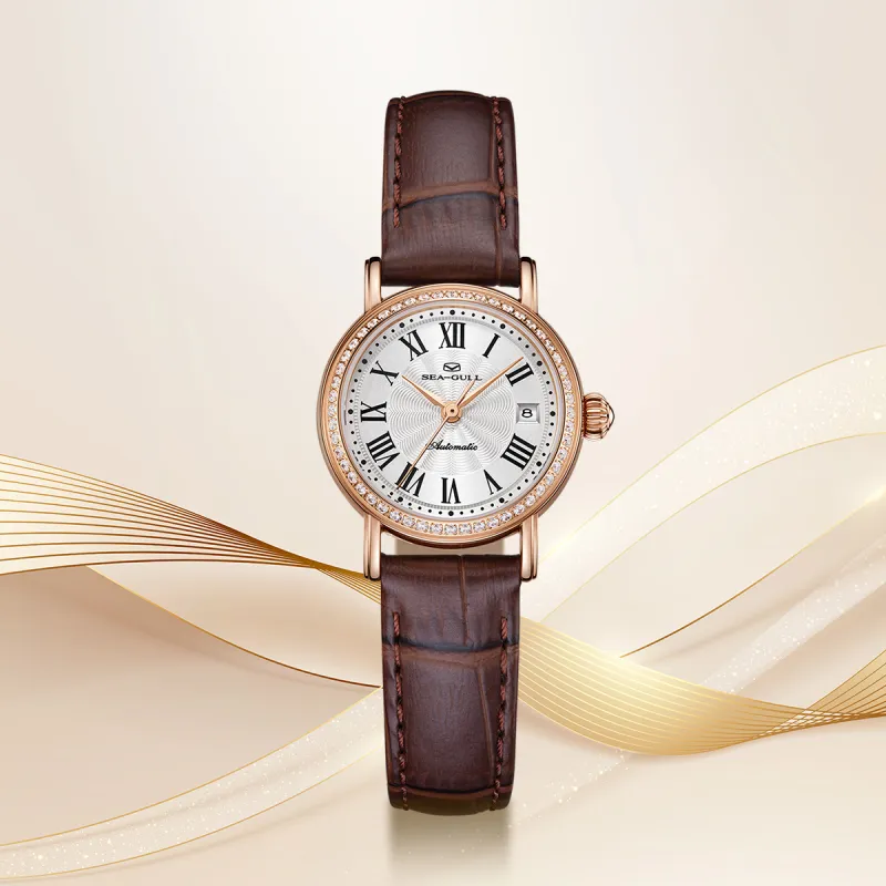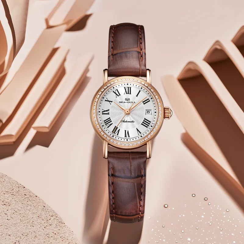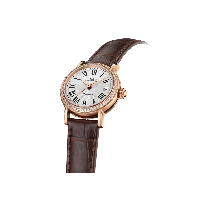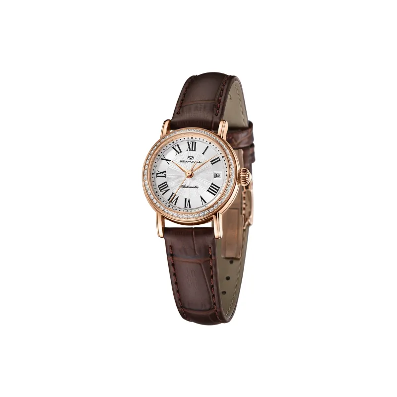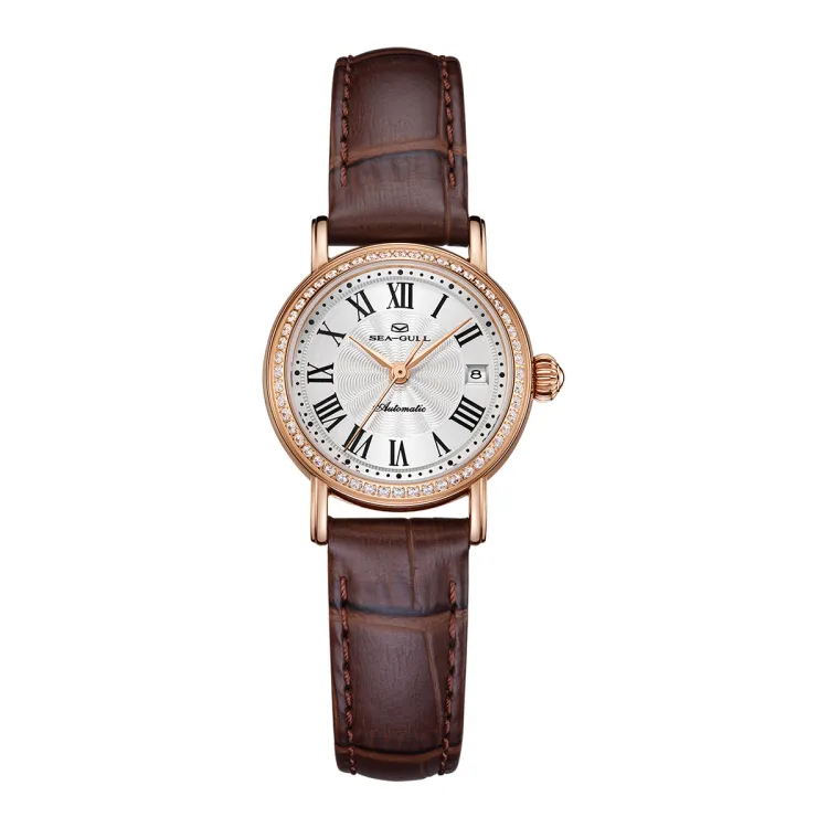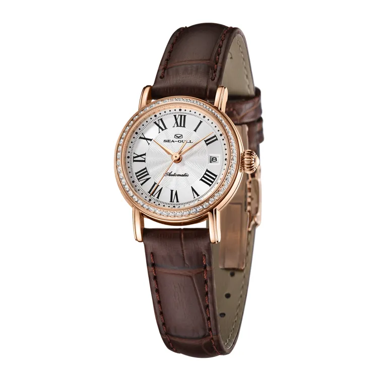 Sea Gull National Автоматический Механический Механизм Часы с Ремешком из Натуральной Кожи Женские Часы с Белым Циферблатом